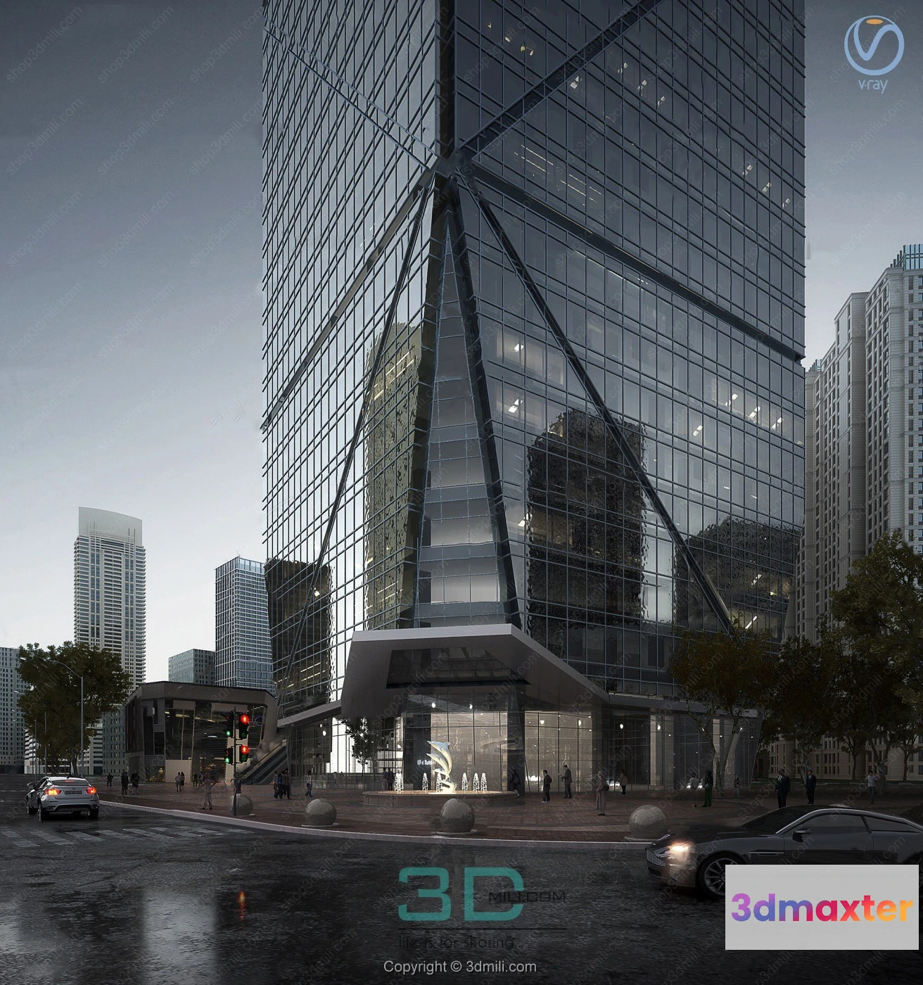 3D Models / Bathroom / 03.Modern cloudy office building exterior 3d model – 11036 3D Max