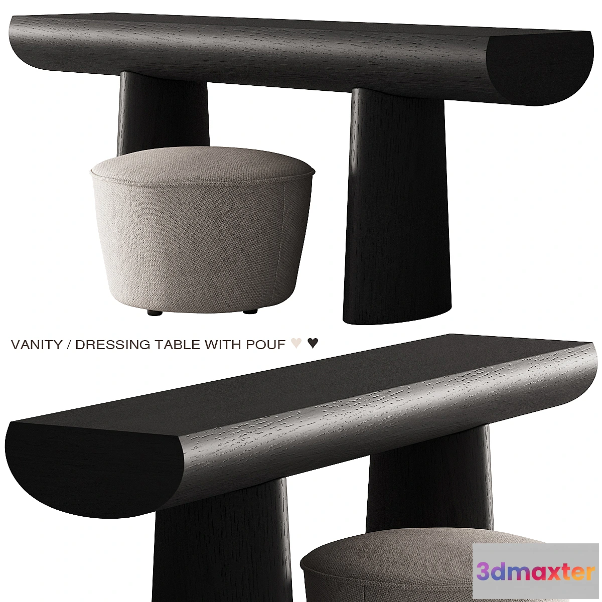 Console Table Aldo Bakker by karakter copenhagen and Menu Cairn Round Pouf 3d model.