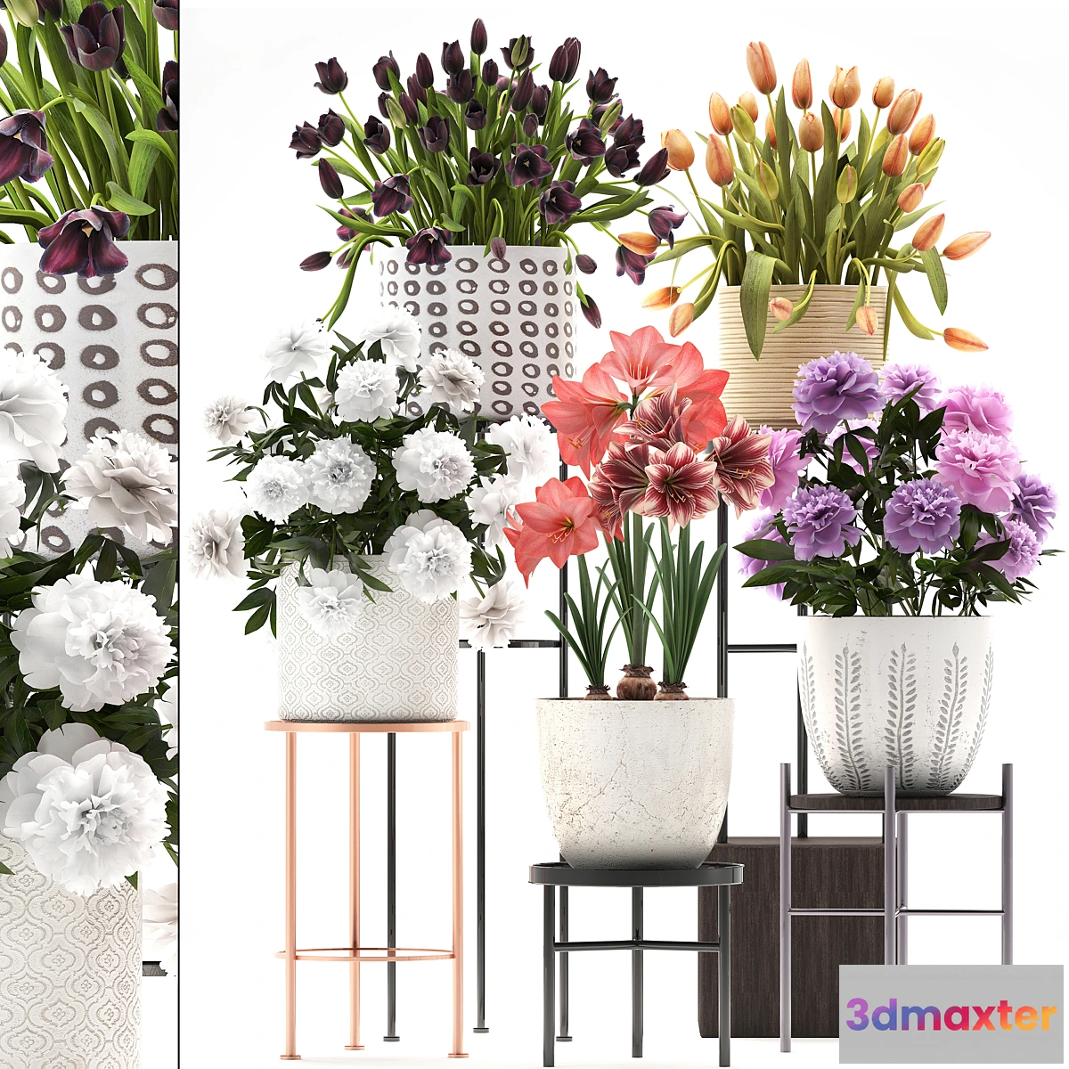 Stand Peony Tulip Hippeastrum bouquet set garden flowers flower shelf stand Scandinavian style