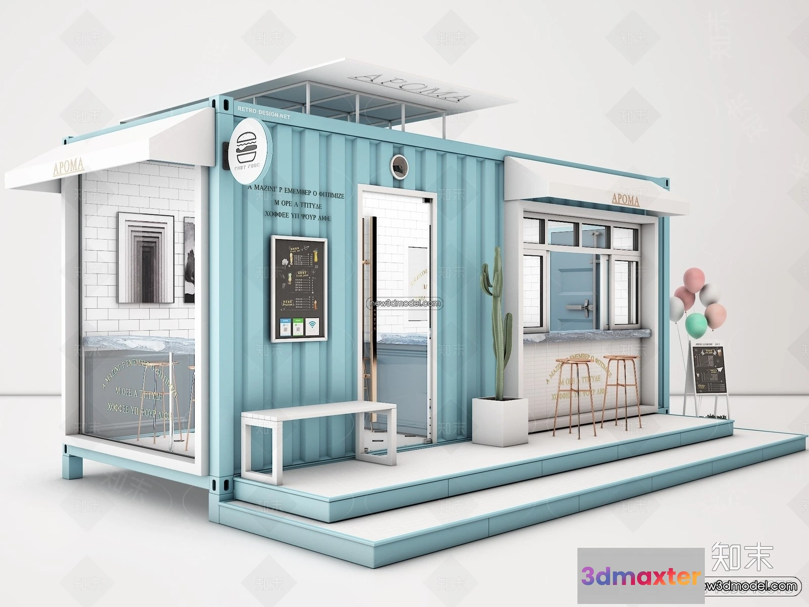 3D Models / 3D Scenes / Interior / Commercial Spaces / 3D Model of Container Coffee – 3D Scene – 008 3D Max