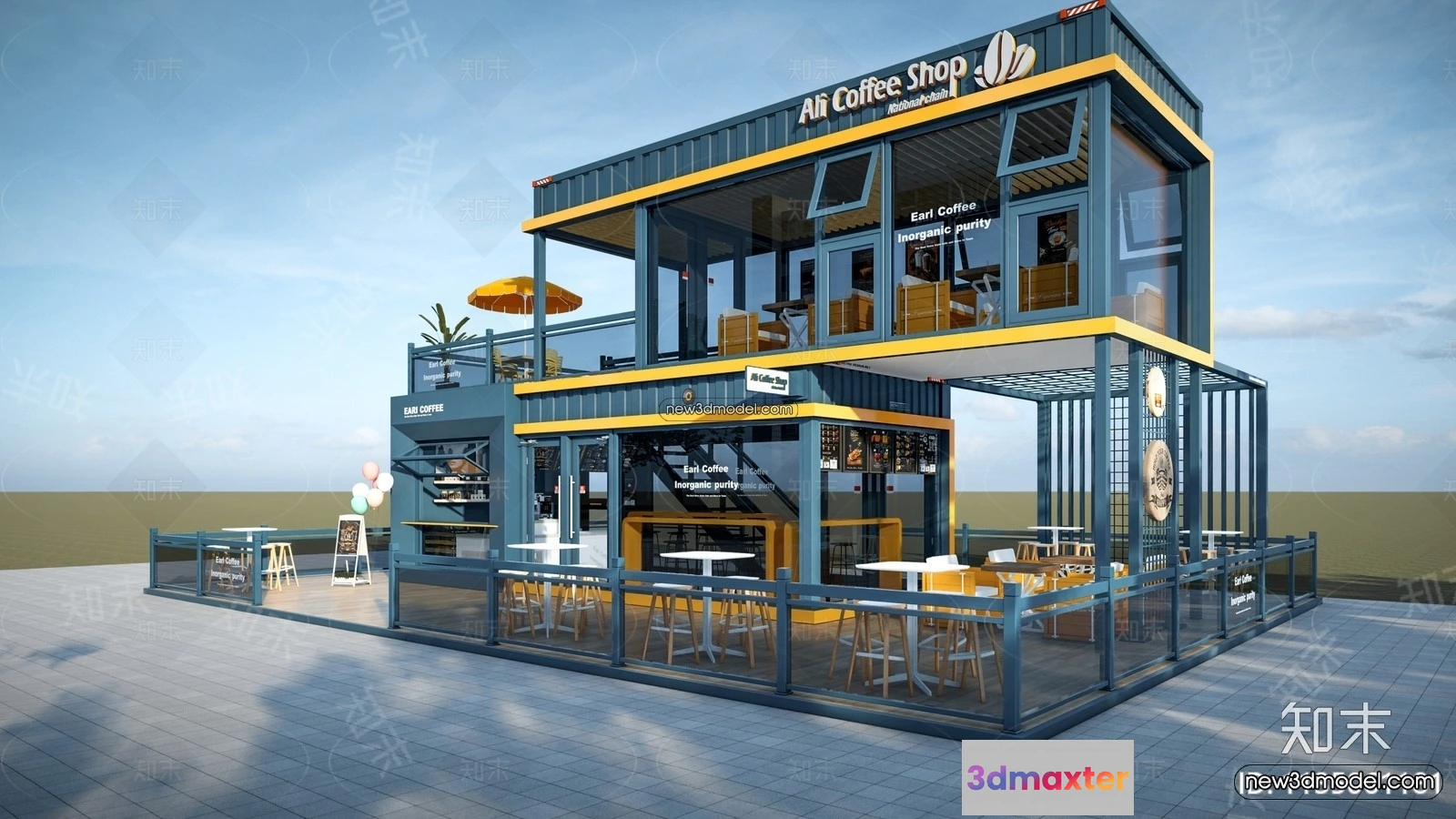 3D Model of Container Coffee – 3D Scene – 024 – Commercial Spaces 3D Model – VRAY