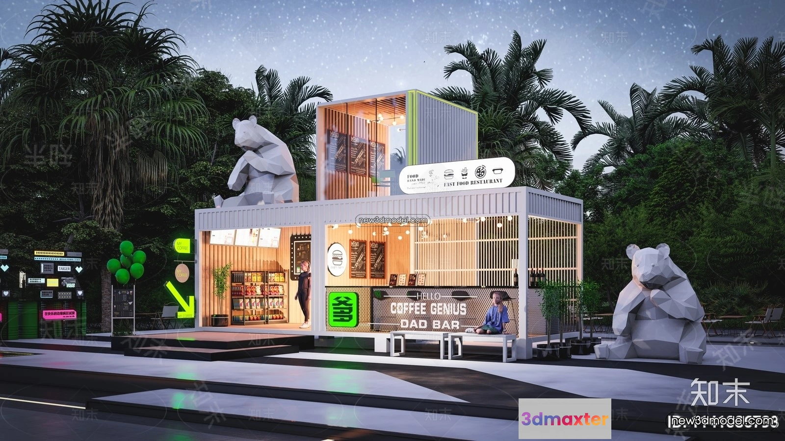 3D Model of Container Coffee – 3D Scene – 081 – Commercial Spaces 3D Model – VRAY