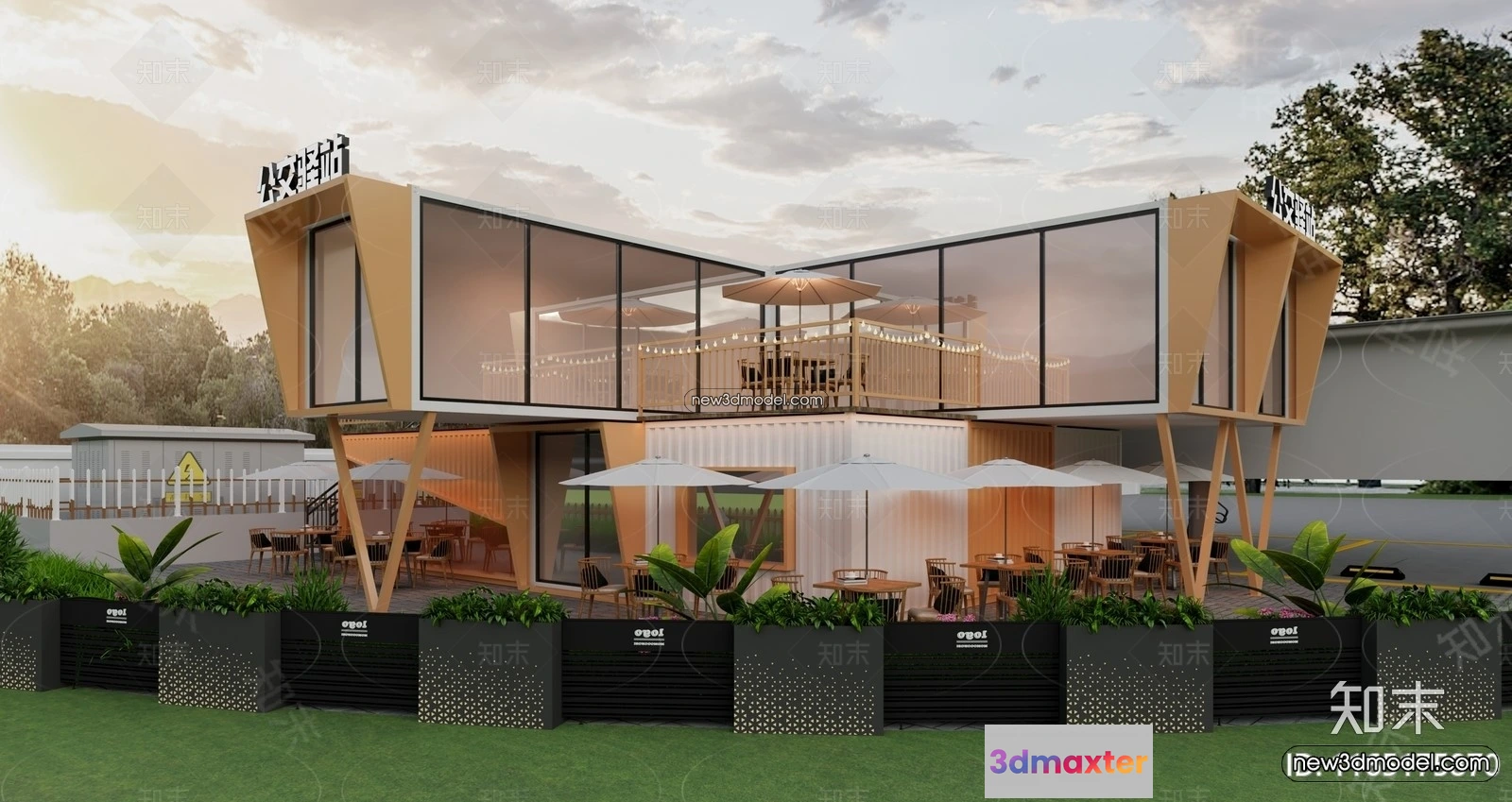 3D Model of Container Coffee – 3D Scene – 128 – Commercial Spaces 3D Model – VRAY