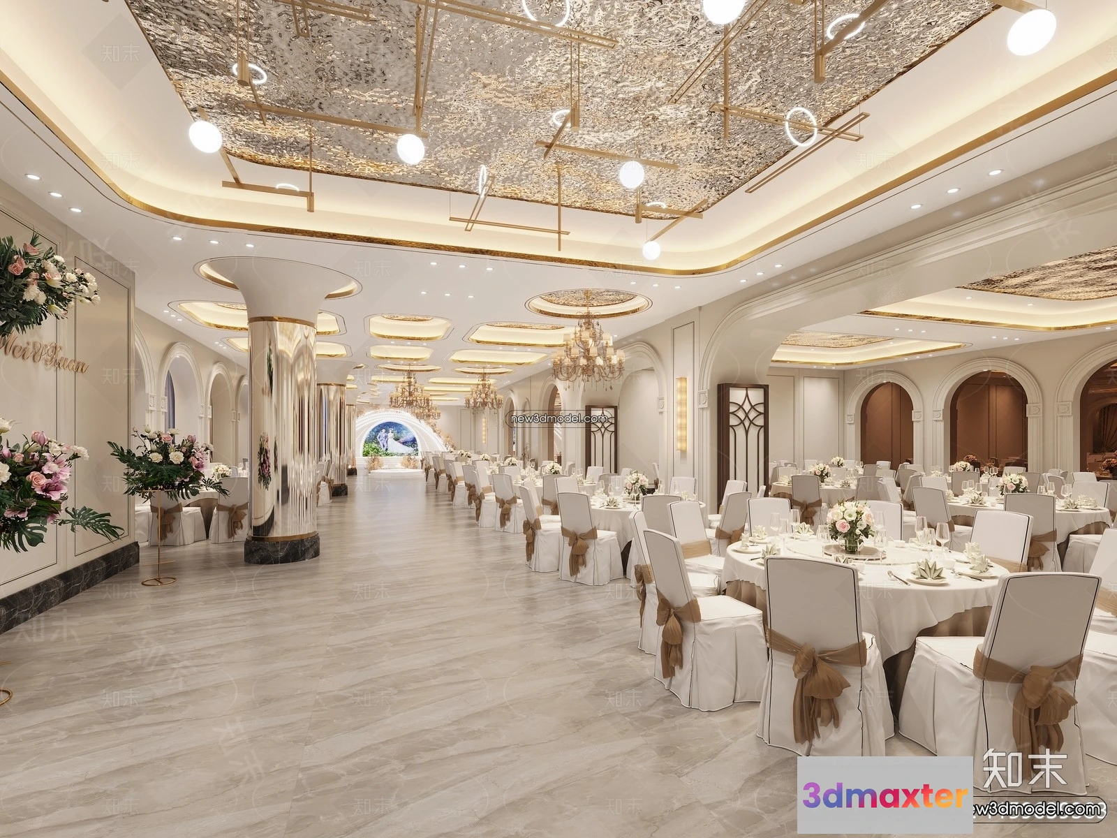 3D Models / 3D Scenes / Interior / Commercial Spaces / 3D Model of Wedding Hall – 3D Scene – 036 3D Max