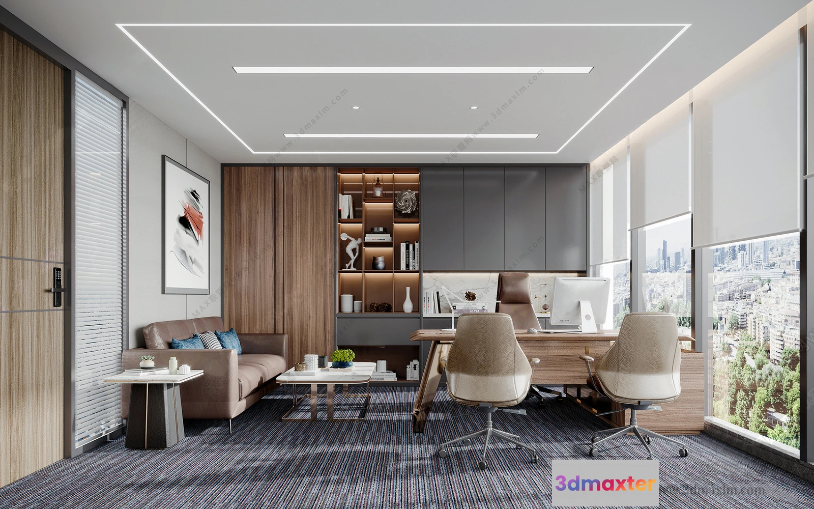3D Models / 3D Scenes / Interior / Office Spaces / 3D OFFICE INTERIOR (VRAY) – MANAGER ROOM 3D SCENES – 003