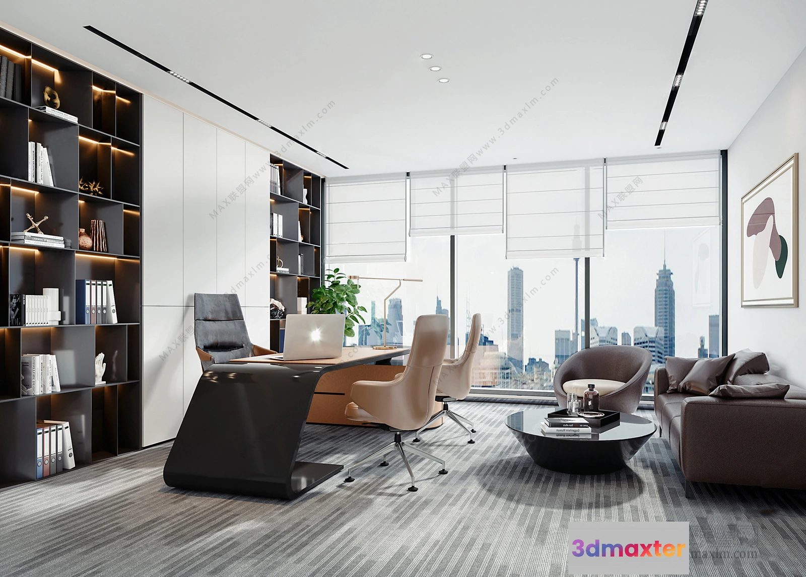 3D Models / 3D Scenes / Interior / Office Spaces / 3D OFFICE INTERIOR (VRAY) – MANAGER ROOM 3D SCENES – 007