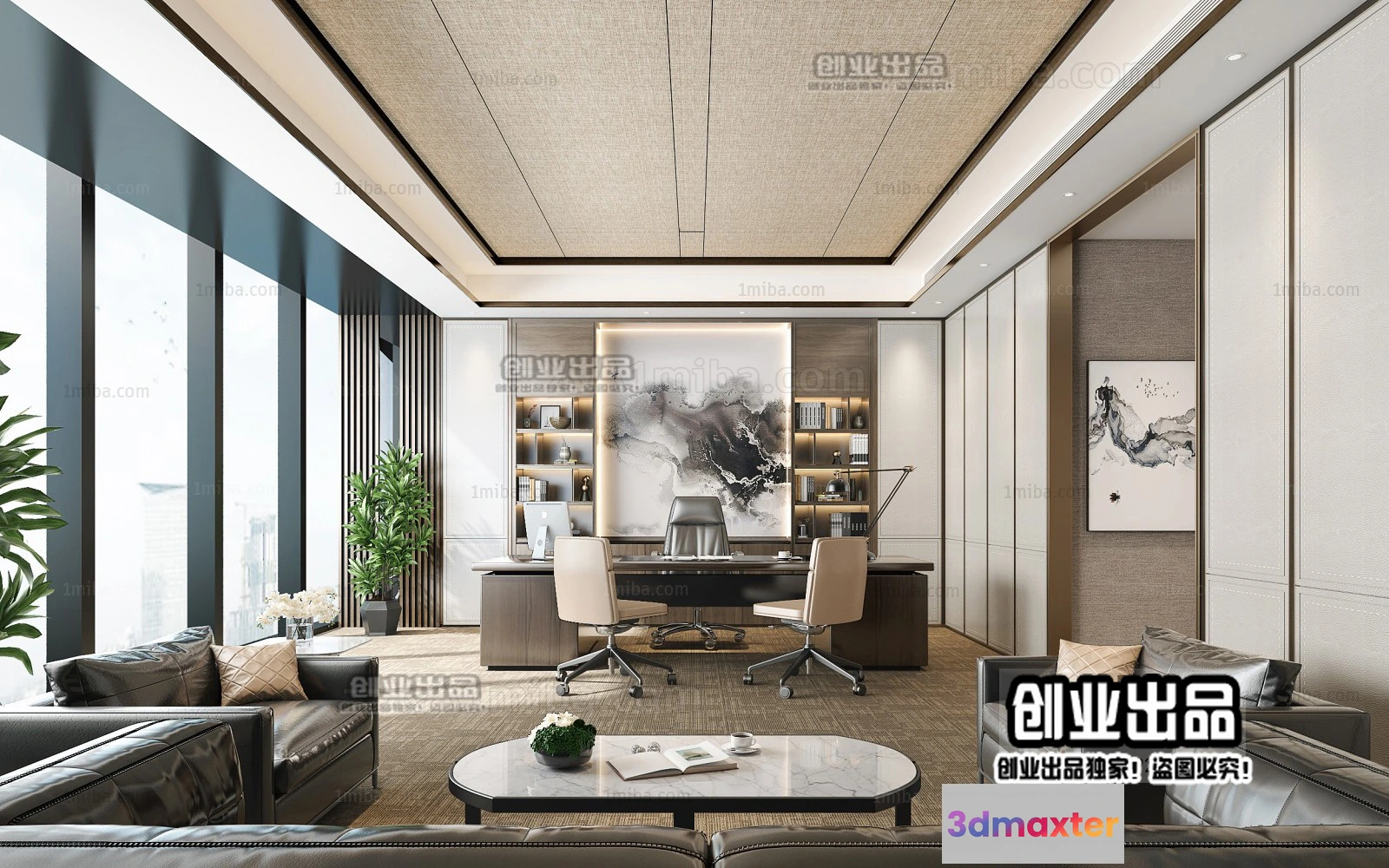 3D Models / 3D Scenes / Interior / Office Spaces / 3D OFFICE INTERIOR (VRAY) – MANAGER ROOM 3D SCENES – 019