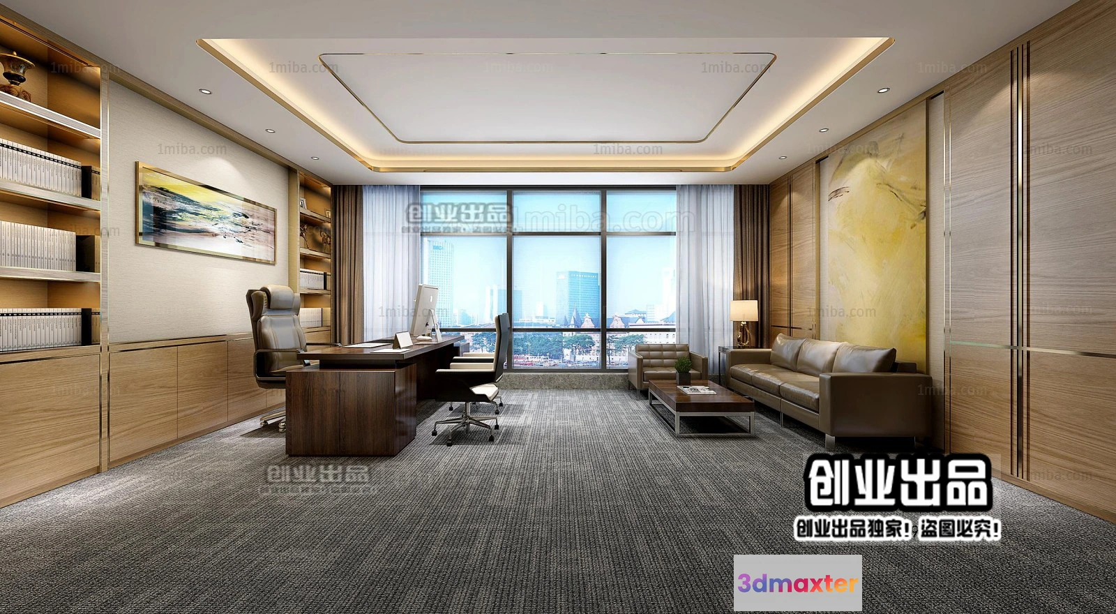3D Models / 3D Scenes / Interior / Office Spaces / 3D OFFICE INTERIOR (VRAY) – MANAGER ROOM 3D SCENES – 023