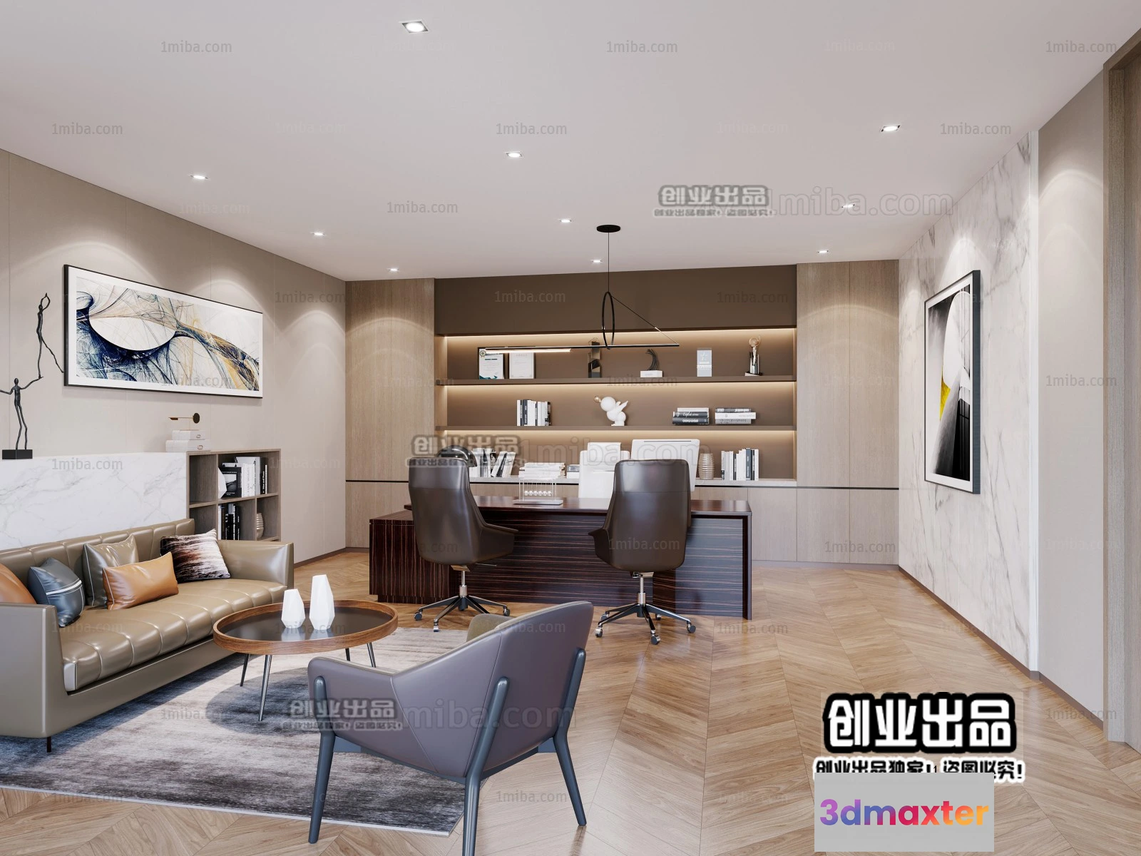 3D Models / 3D Scenes / Interior / Office Spaces / 3D OFFICE INTERIOR (VRAY) – MANAGER ROOM 3D SCENES – 025