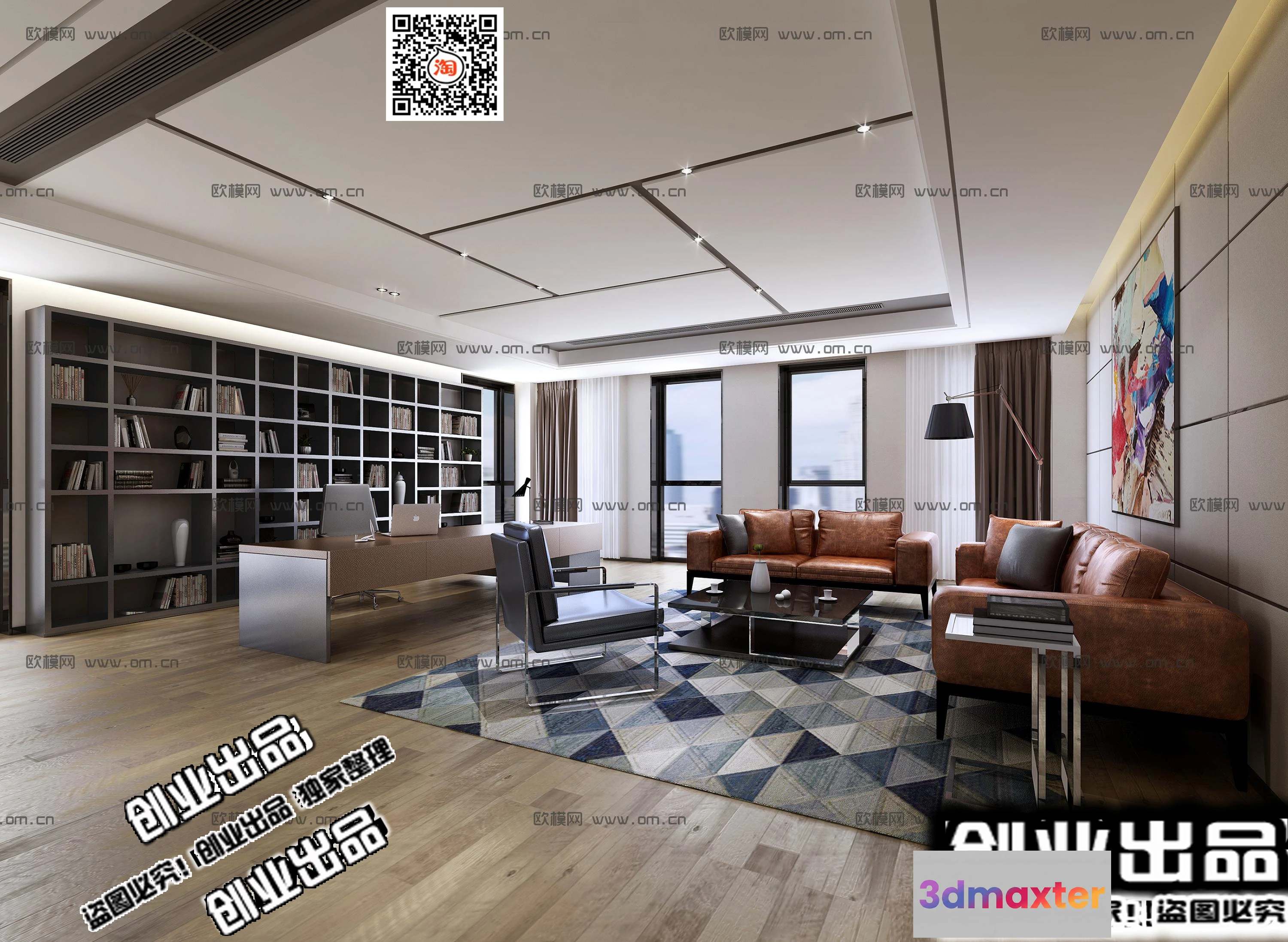 3D Models / 3D Scenes / Interior / Office Spaces / 3D OFFICE INTERIOR (VRAY) – MANAGER ROOM 3D SCENES – 037