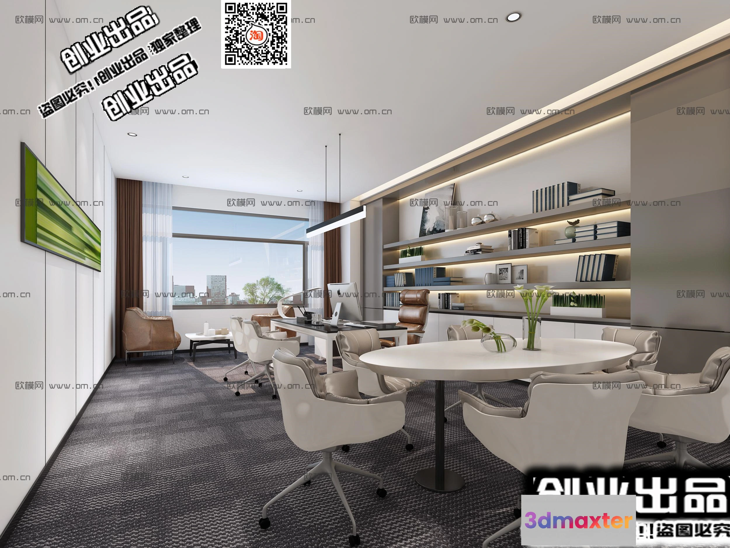 3D Models / 3D Scenes / Interior / Office Spaces / 3D OFFICE INTERIOR (VRAY) – MANAGER ROOM 3D SCENES – 045