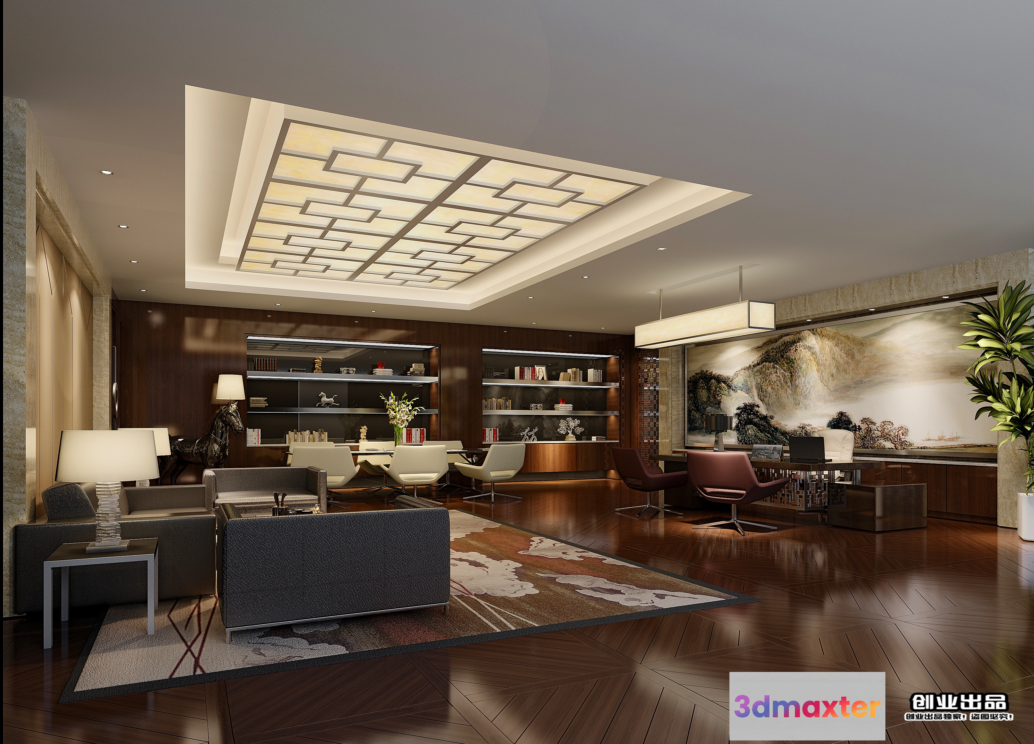 3D Models / 3D Scenes / Interior / Office Spaces / 3D OFFICE INTERIOR (VRAY) – MANAGER ROOM 3D SCENES – 099