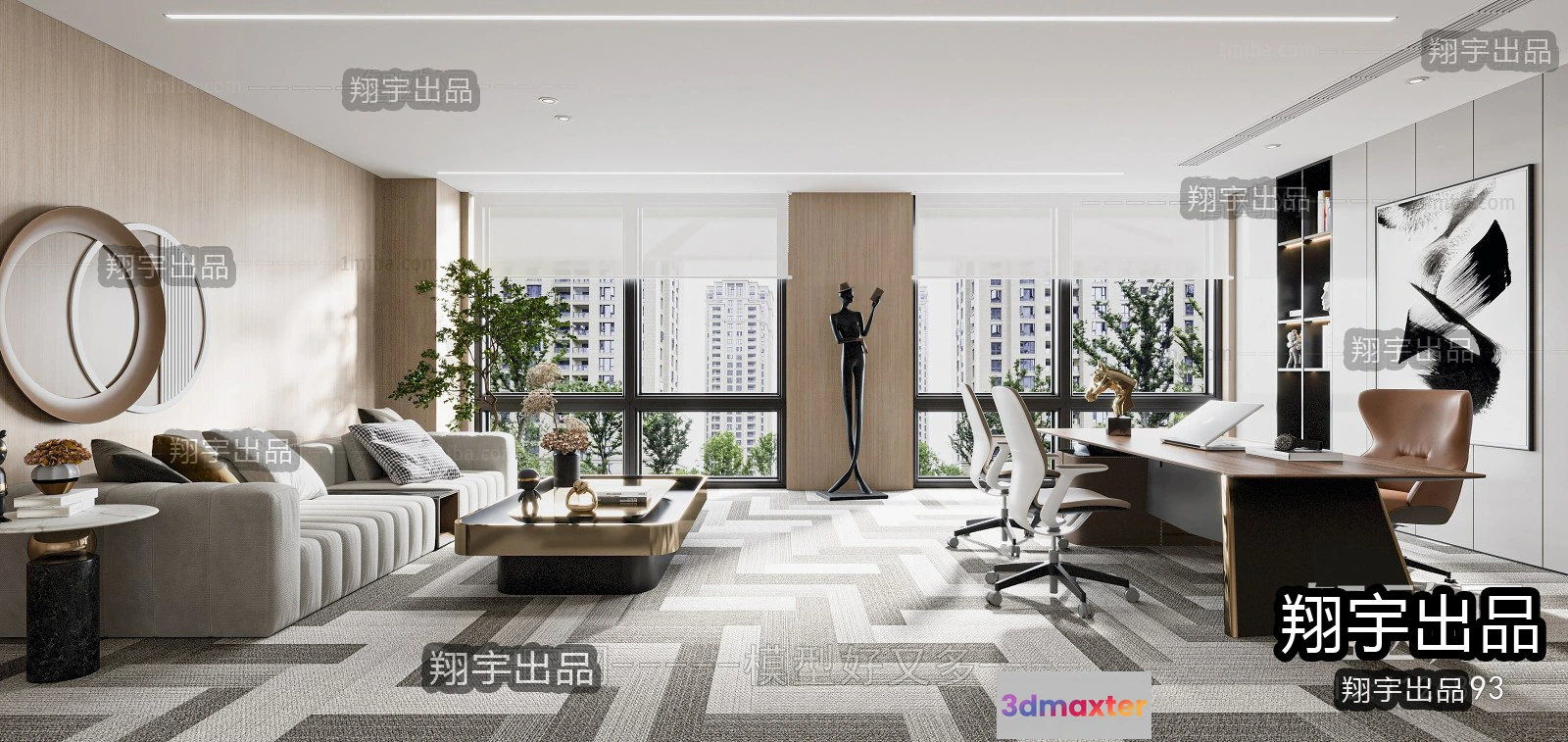 3D Models / 3D Scenes / Interior / Office Spaces / 3D OFFICE INTERIOR (VRAY) – MANAGER ROOM 3D SCENES – 106
