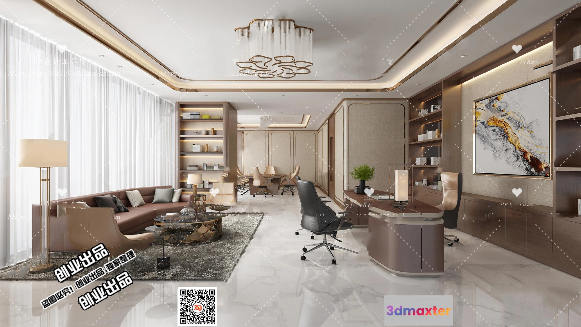 3D Models / 3D Scenes / Interior / Office Spaces / 3D OFFICE INTERIOR (VRAY) – MANAGER ROOM 3D SCENES – 126