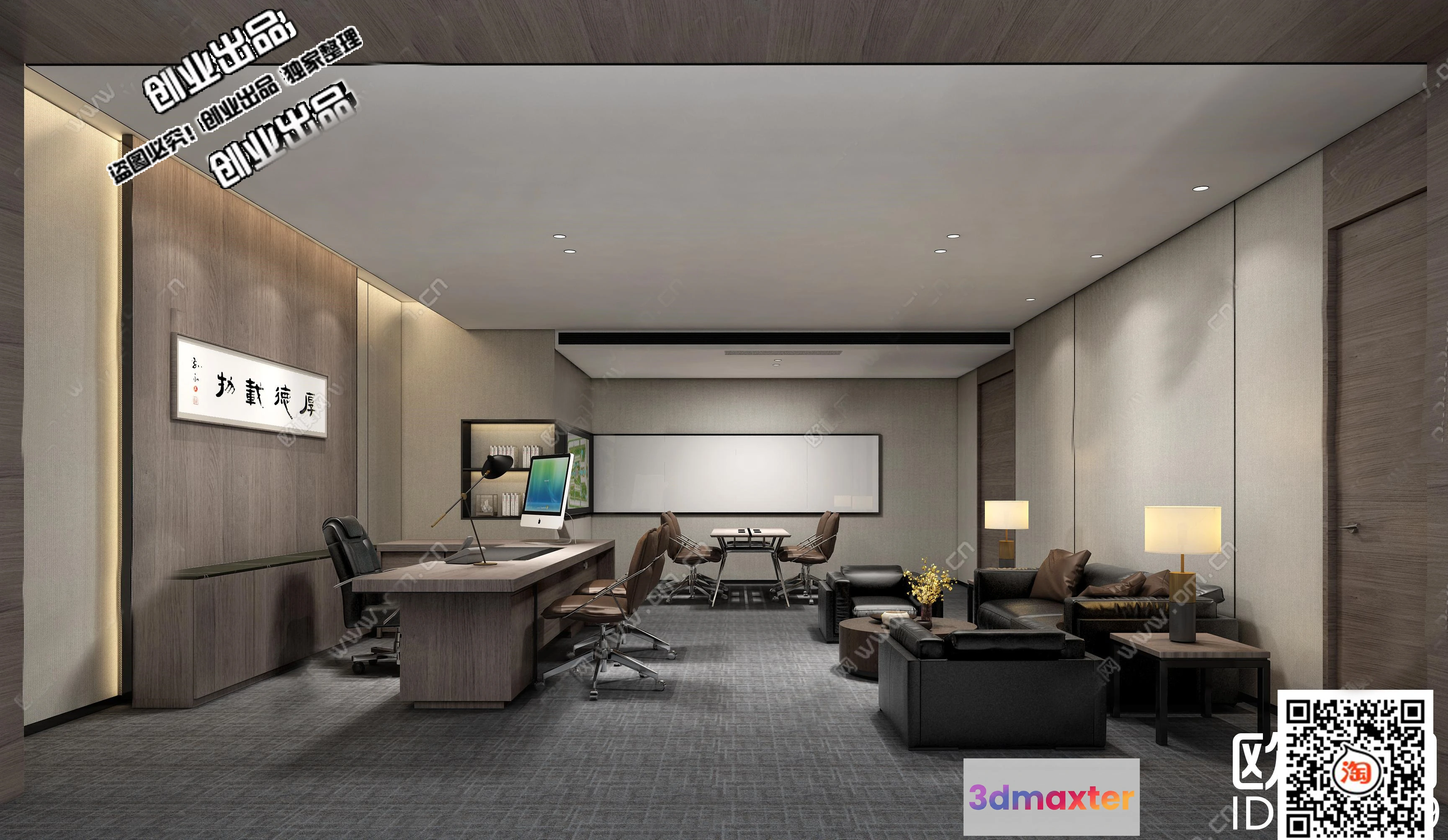3D Models / 3D Scenes / Interior / Office Spaces / 3D OFFICE INTERIOR (VRAY) – MANAGER ROOM 3D SCENES – 136