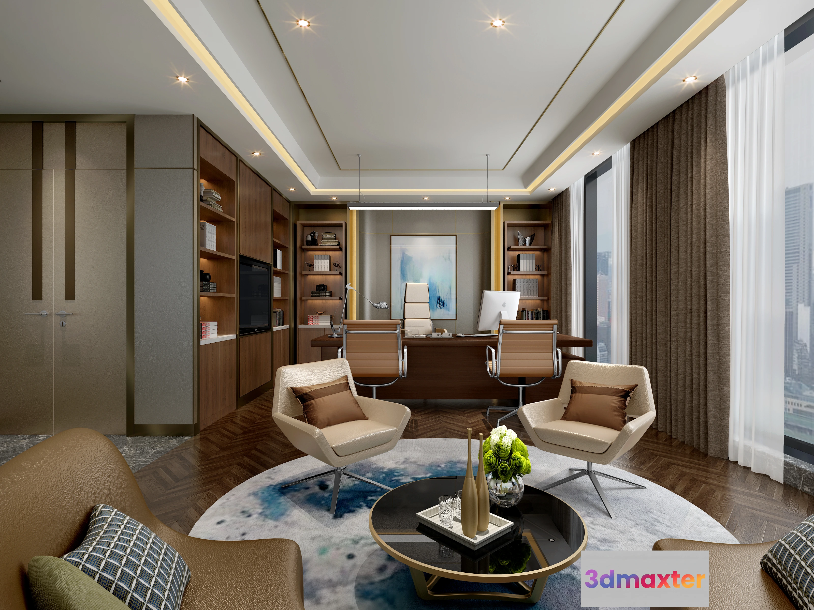 3D Models / 3D Scenes / Interior / Office Spaces / 3D OFFICE INTERIOR (VRAY) – MANAGER ROOM 3D SCENES – 144