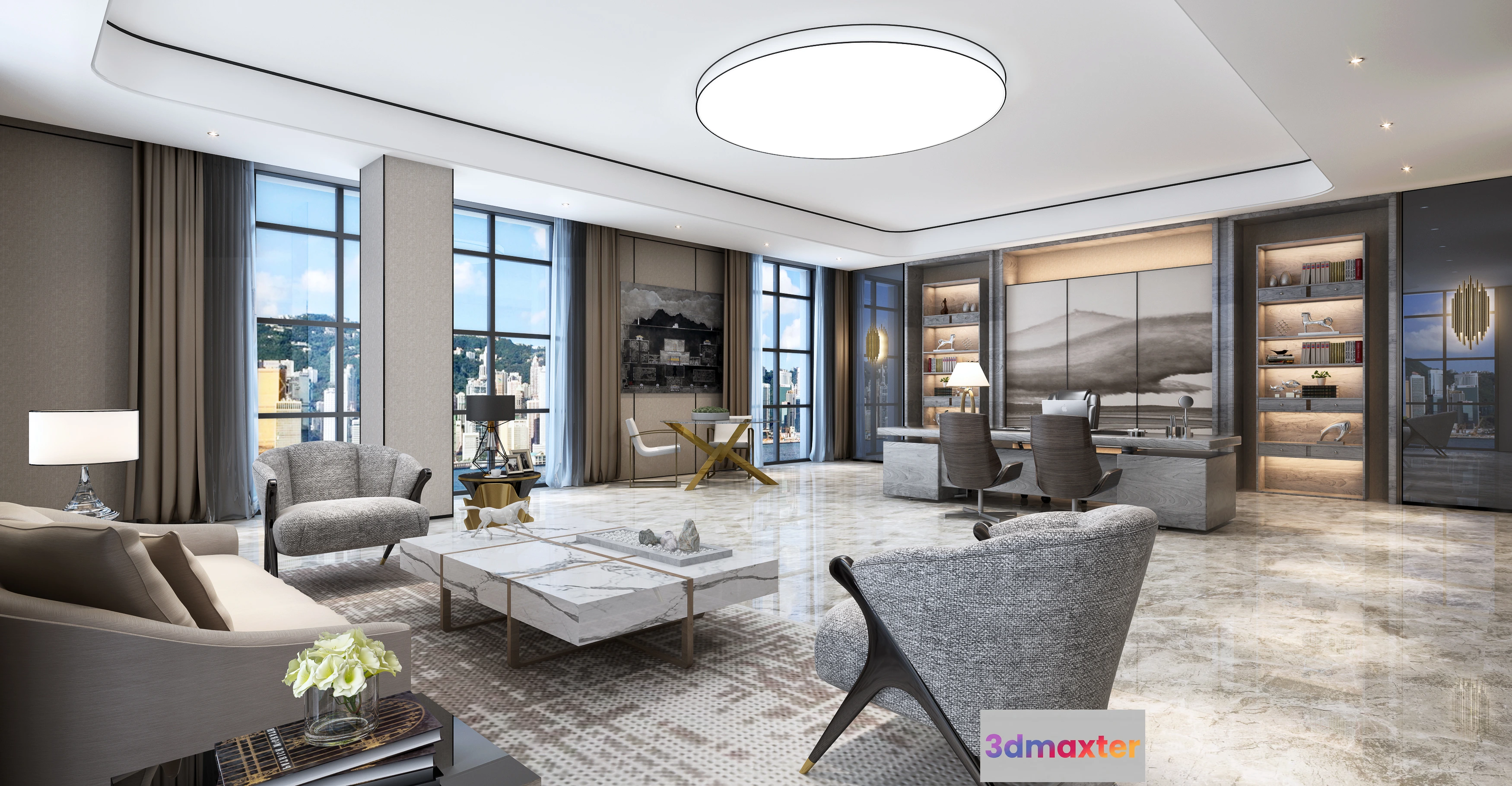 3D Models / 3D Scenes / Interior / Office Spaces / 3D OFFICE INTERIOR (VRAY) – MANAGER ROOM 3D SCENES – 148