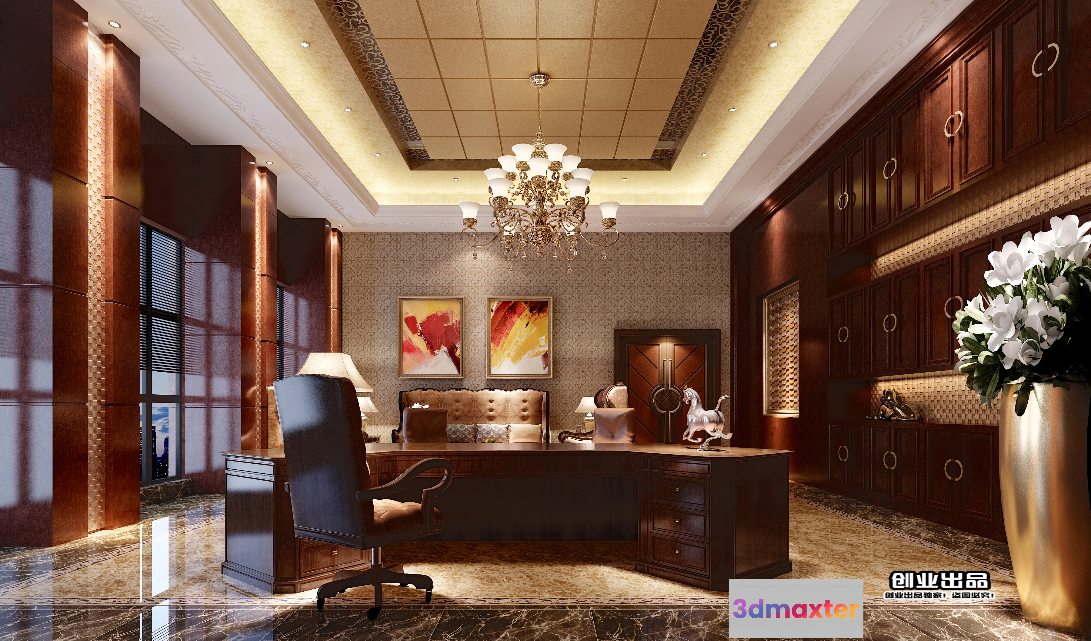 3D Models / 3D Scenes / Interior / Office Spaces / 3D OFFICE INTERIOR (VRAY) – MANAGER ROOM 3D SCENES – 151
