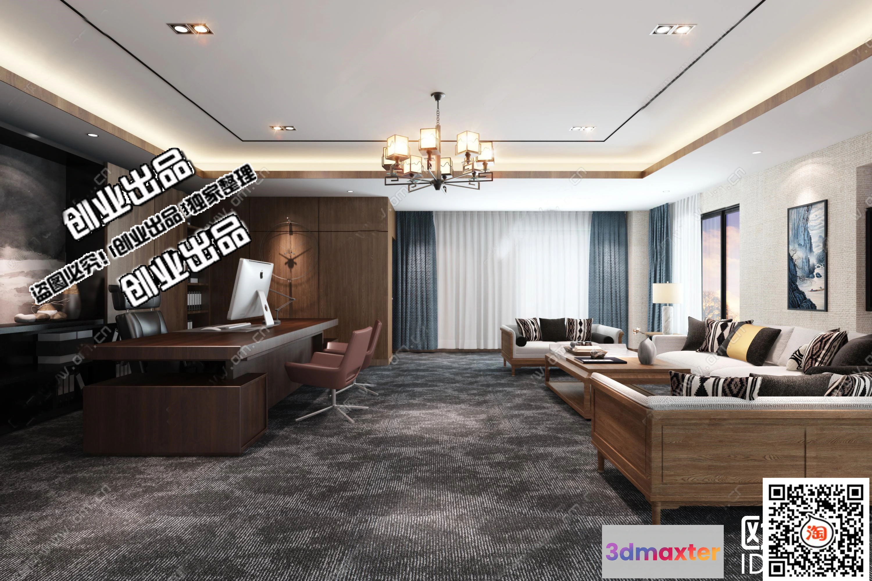 3D Models / 3D Scenes / Interior / Office Spaces / 3D OFFICE INTERIOR (VRAY) – MANAGER ROOM 3D SCENES – 152