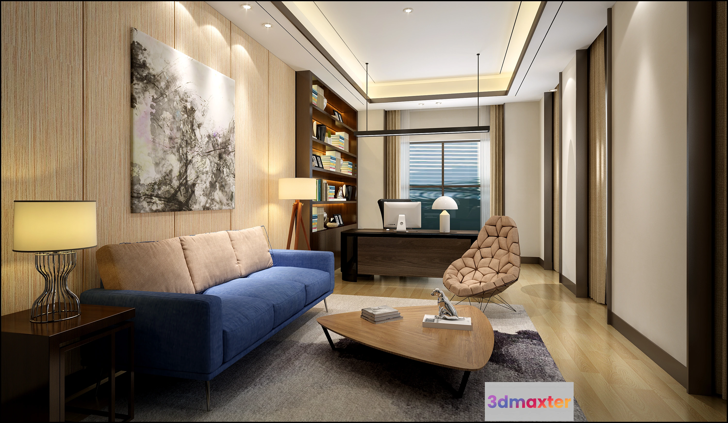 3D Models / 3D Scenes / Interior / Office Spaces / 3D OFFICE INTERIOR (VRAY) – MANAGER ROOM 3D SCENES – 154