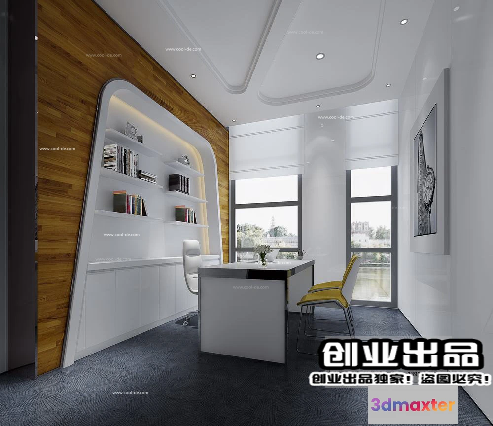 3D Models / 3D Scenes / Interior / Office Spaces / 3D OFFICE INTERIOR (VRAY) – MANAGER ROOM 3D SCENES – 163