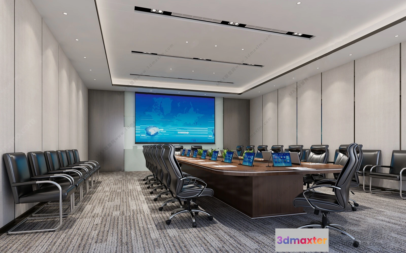 3D Models / 3D Scenes / Interior / Commercial Spaces / 3D OFFICE INTERIOR (VRAY) – MEETING ROOM 3D SCENES – 005