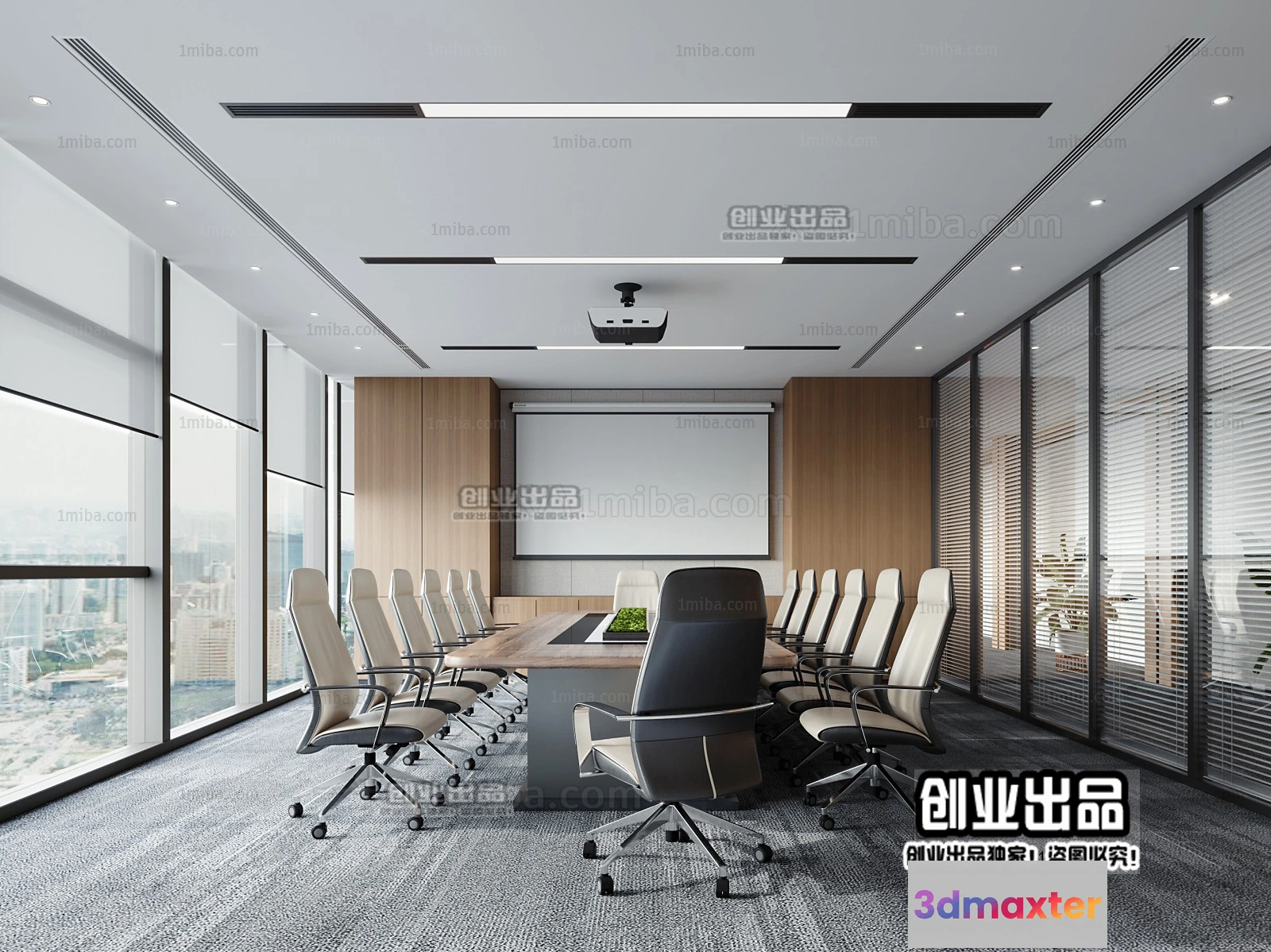 3D Models / 3D Scenes / Interior / Commercial Spaces / 3D OFFICE INTERIOR (VRAY) – MEETING ROOM 3D SCENES – 036