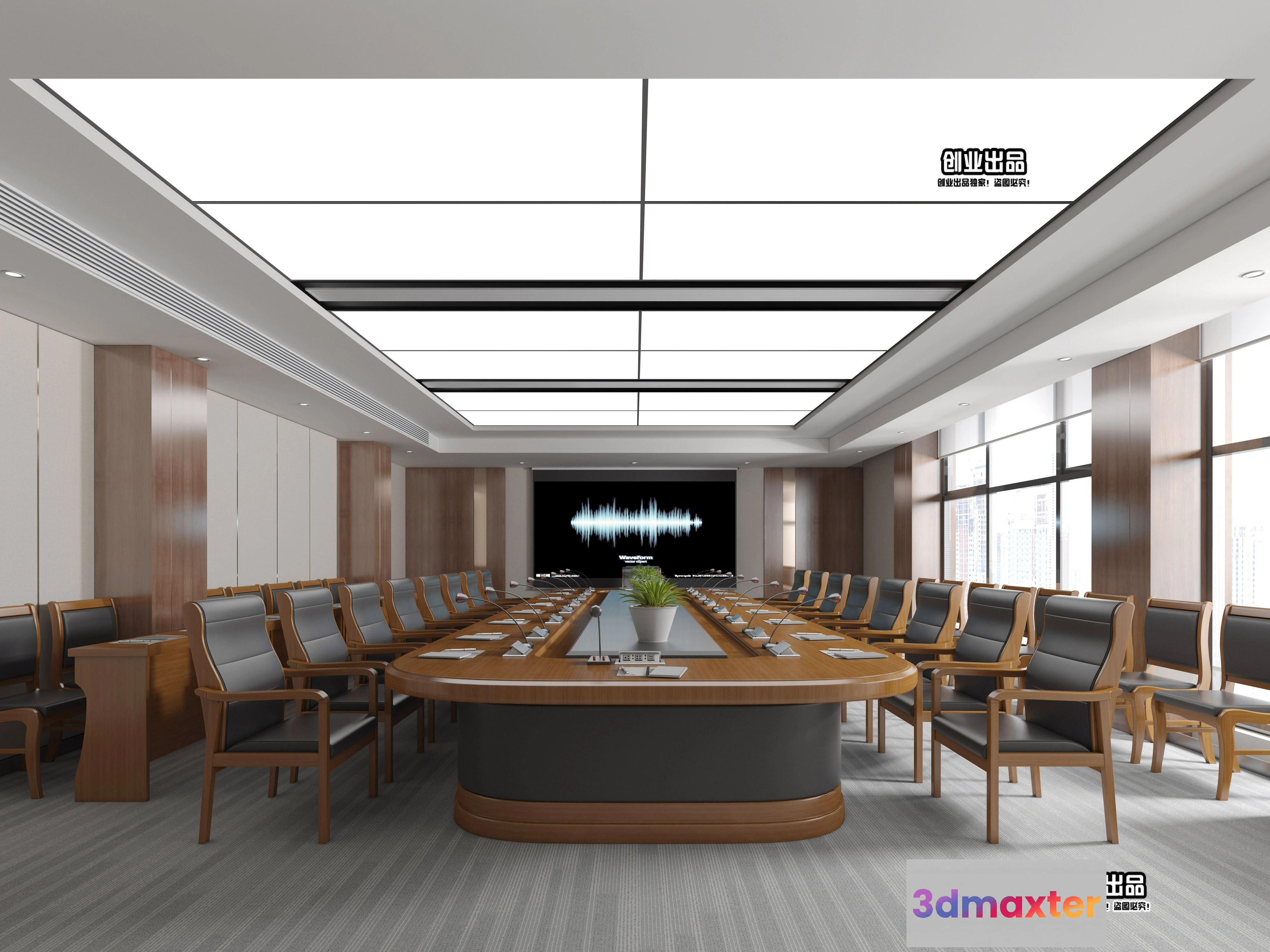 3D Models / 3D Scenes / Interior / Commercial Spaces / 3D OFFICE INTERIOR (VRAY) – MEETING ROOM 3D SCENES – 037