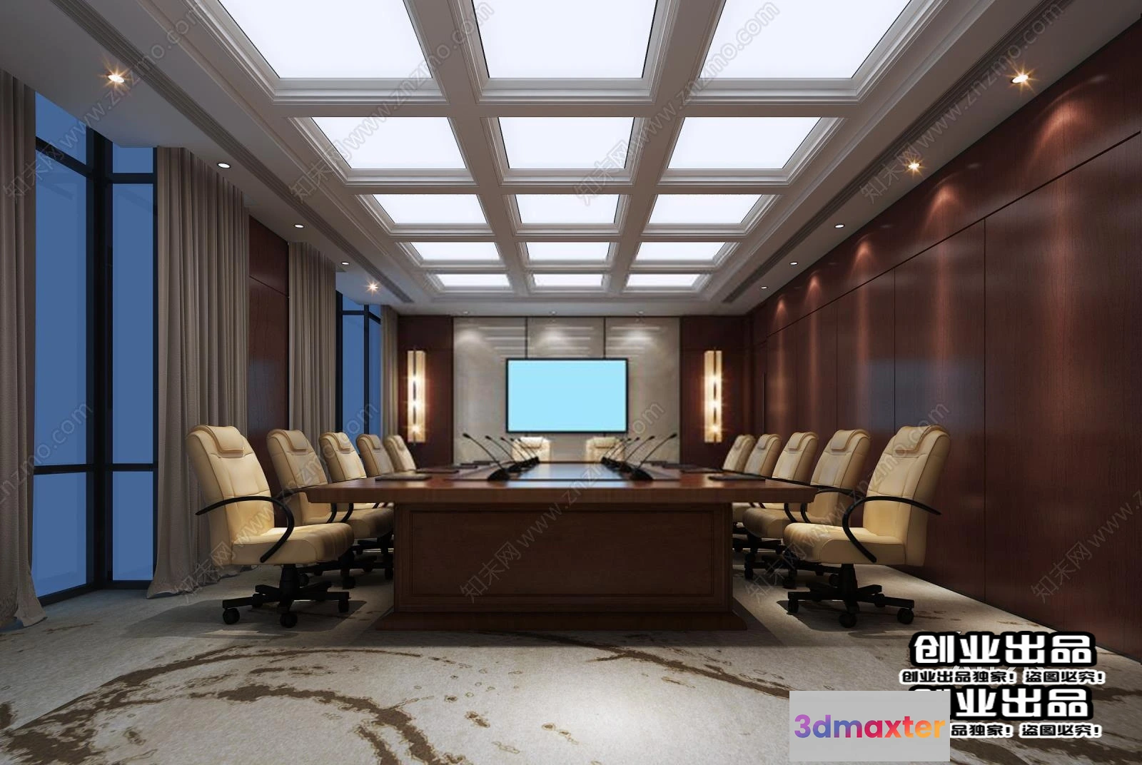 3D Models / 3D Scenes / Interior / Commercial Spaces / 3D OFFICE INTERIOR (VRAY) – MEETING ROOM 3D SCENES – 079