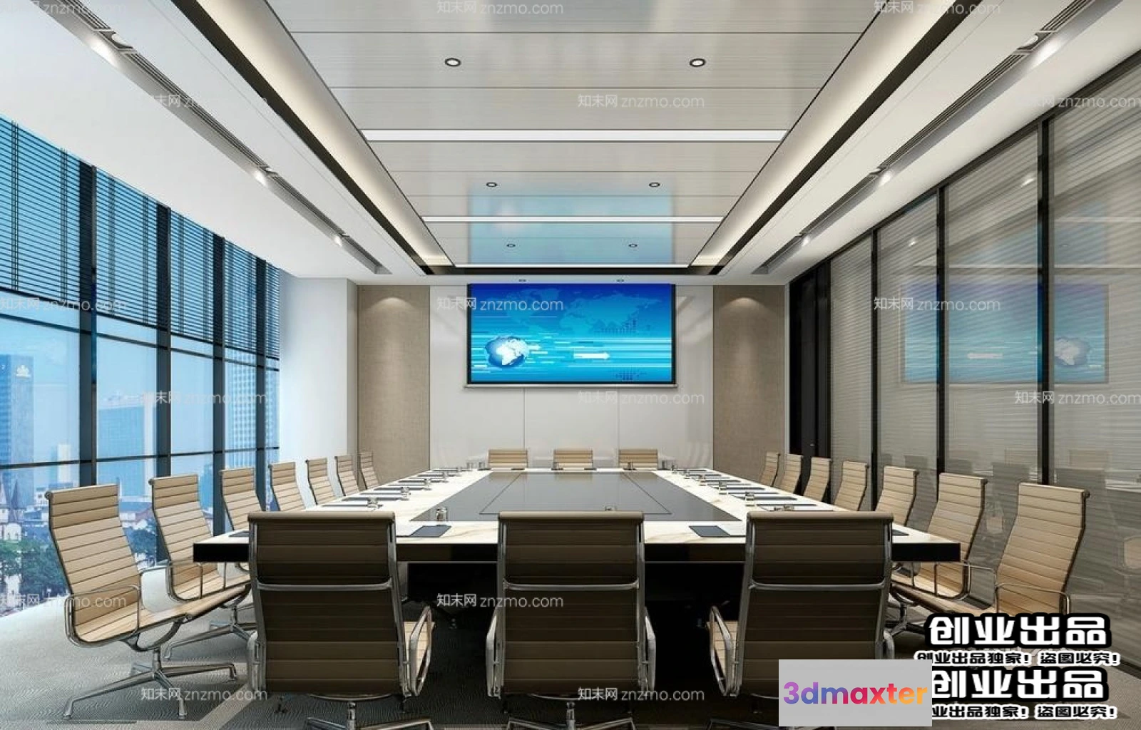3D Models / 3D Scenes / Interior / Commercial Spaces / 3D OFFICE INTERIOR (VRAY) – MEETING ROOM 3D SCENES – 083