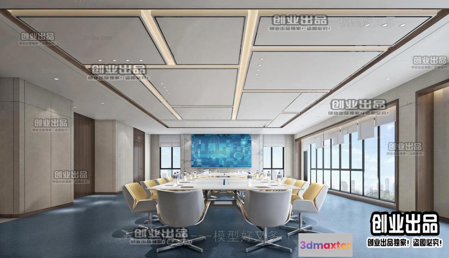 3D Models / 3D Scenes / Interior / Commercial Spaces / 3D OFFICE INTERIOR (VRAY) – MEETING ROOM 3D SCENES – 149
