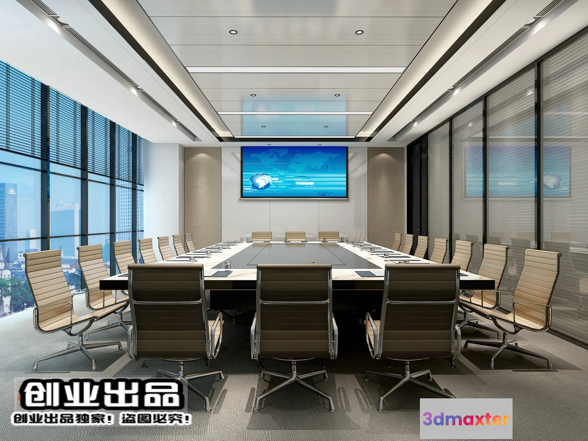 3D Models / 3D Scenes / Interior / Commercial Spaces / 3D OFFICE INTERIOR (VRAY) – MEETING ROOM 3D SCENES – 181