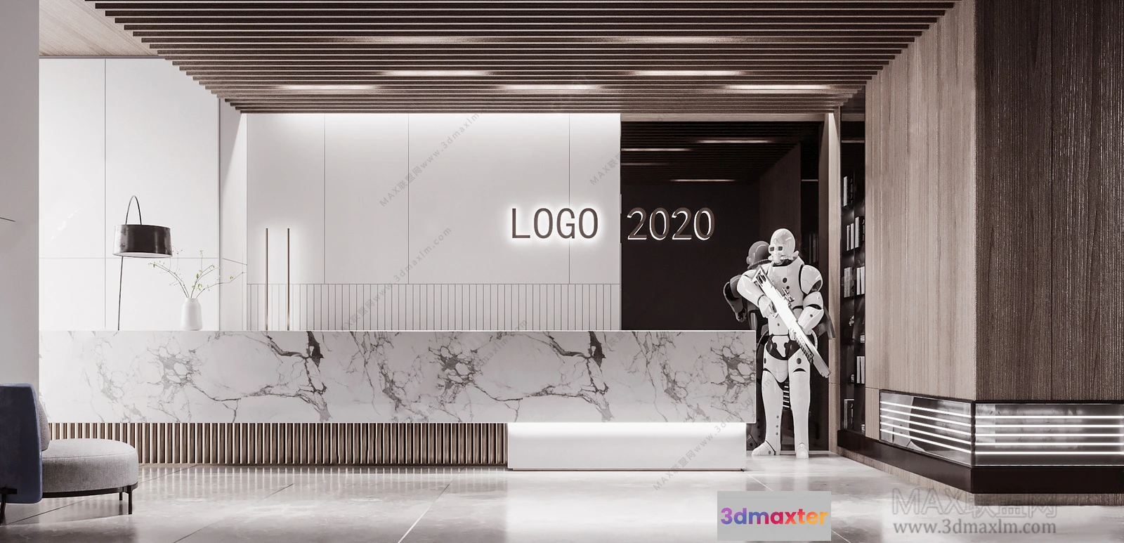 3D Models / 3D Scenes / Interior / Office Spaces / 3D OFFICE INTERIOR (VRAY) – RECEPTION 3D SCENES – 002