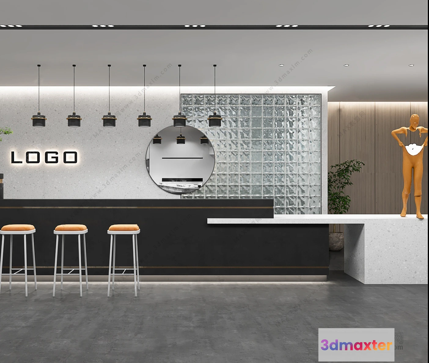 3D Models / 3D Scenes / Interior / Office Spaces / 3D OFFICE INTERIOR (VRAY) – RECEPTION 3D SCENES – 006