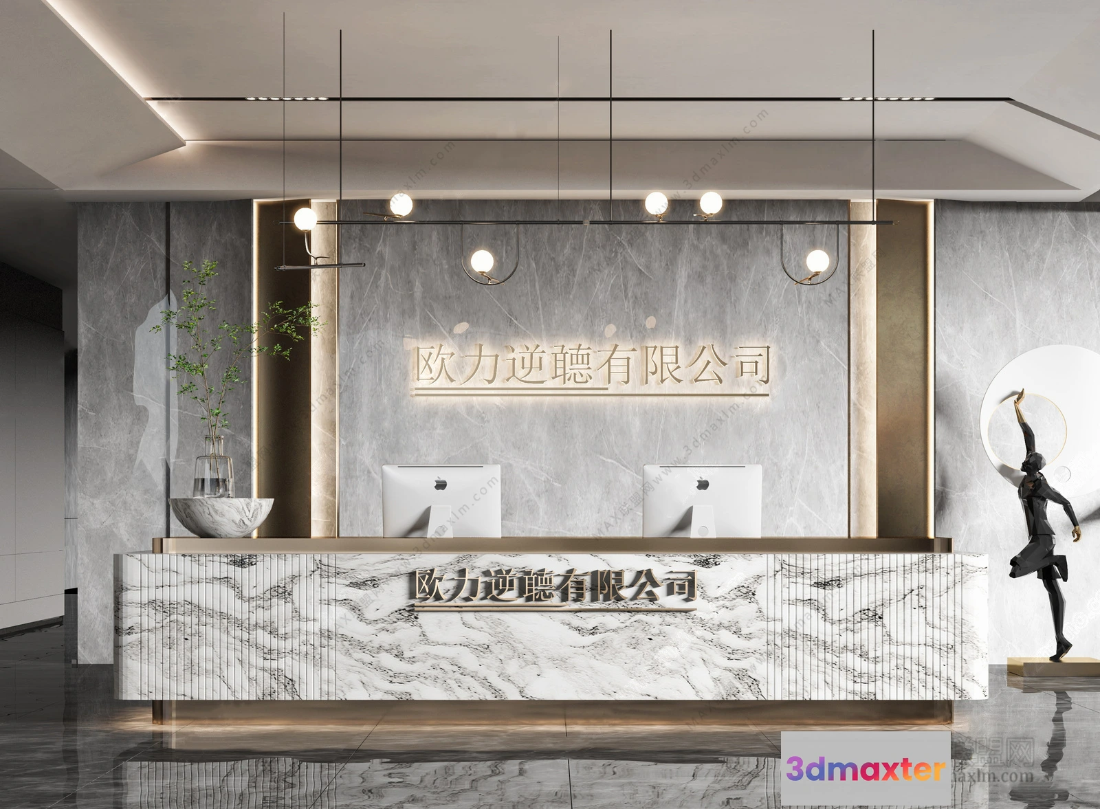 3D Models / 3D Scenes / Interior / Office Spaces / 3D OFFICE INTERIOR (VRAY) – RECEPTION 3D SCENES – 007