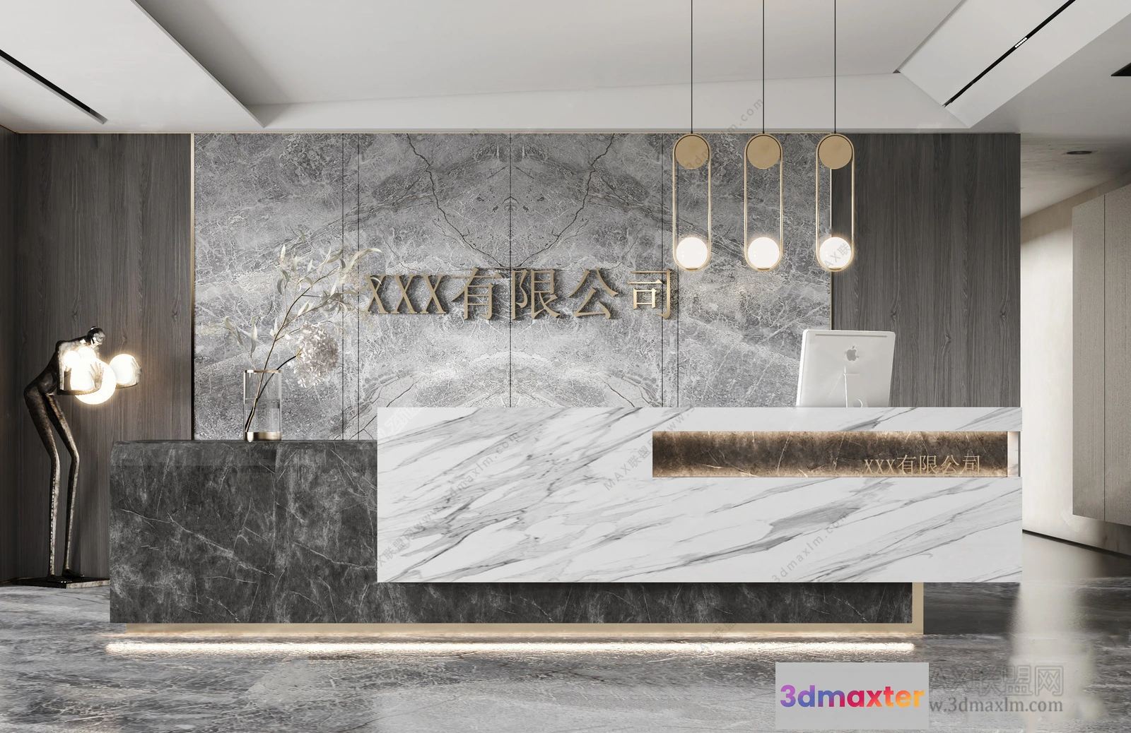 3D Models / 3D Scenes / Interior / Office Spaces / 3D OFFICE INTERIOR (VRAY) – RECEPTION 3D SCENES – 008