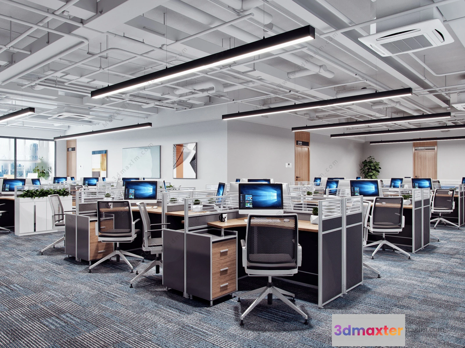 3D Models / 3D Scenes / Interior / Office Spaces / 3D OFFICE INTERIOR (VRAY) – WORKSPACE 3D SCENES – 002