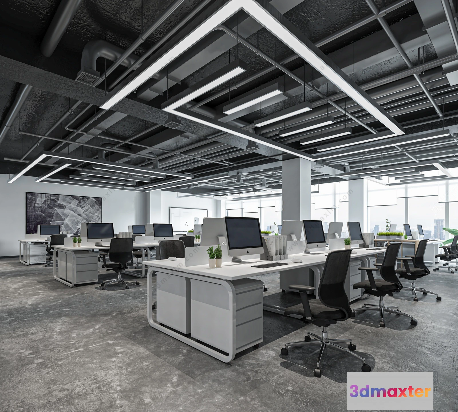 3D Models / 3D Scenes / Interior / Office Spaces / 3D OFFICE INTERIOR (VRAY) – WORKSPACE 3D SCENES – 004