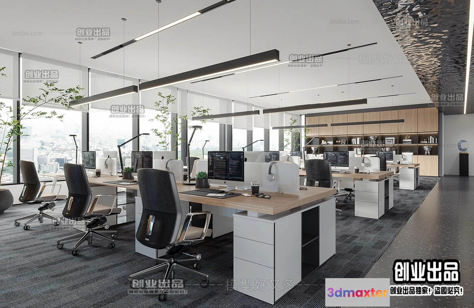 3D Models / 3D Scenes / Interior / Office Spaces / 3D OFFICE INTERIOR (VRAY) – WORKSPACE 3D SCENES – 017
