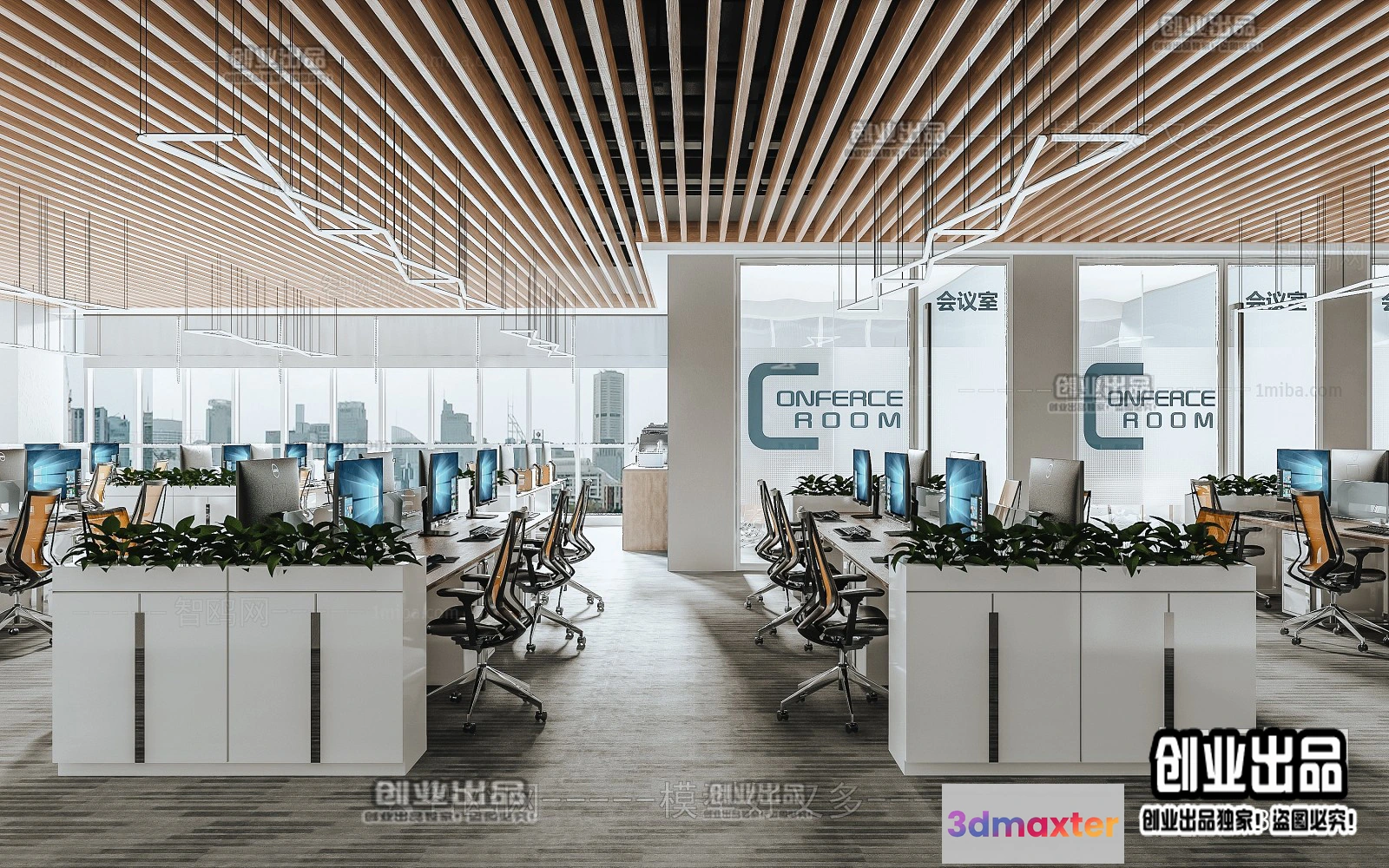 3D Models / 3D Scenes / Interior / Office Spaces / 3D OFFICE INTERIOR (VRAY) – WORKSPACE 3D SCENES – 019