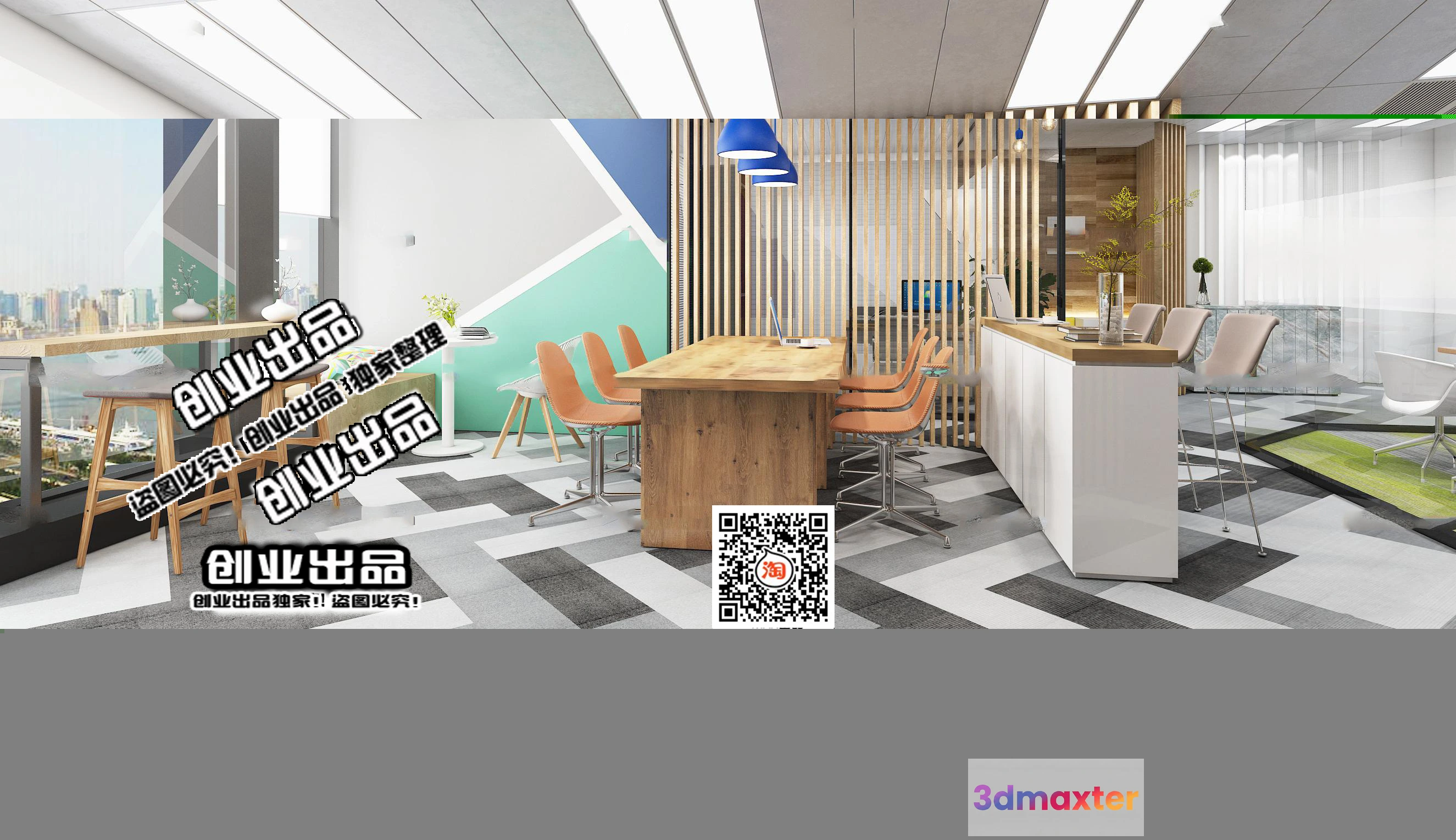 3D Models / 3D Scenes / Interior / Office Spaces / 3D OFFICE INTERIOR (VRAY) – WORKSPACE 3D SCENES – 060