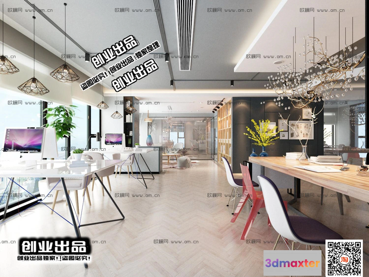 3D Models / 3D Scenes / Interior / Office Spaces / 3D OFFICE INTERIOR (VRAY) – WORKSPACE 3D SCENES – 123