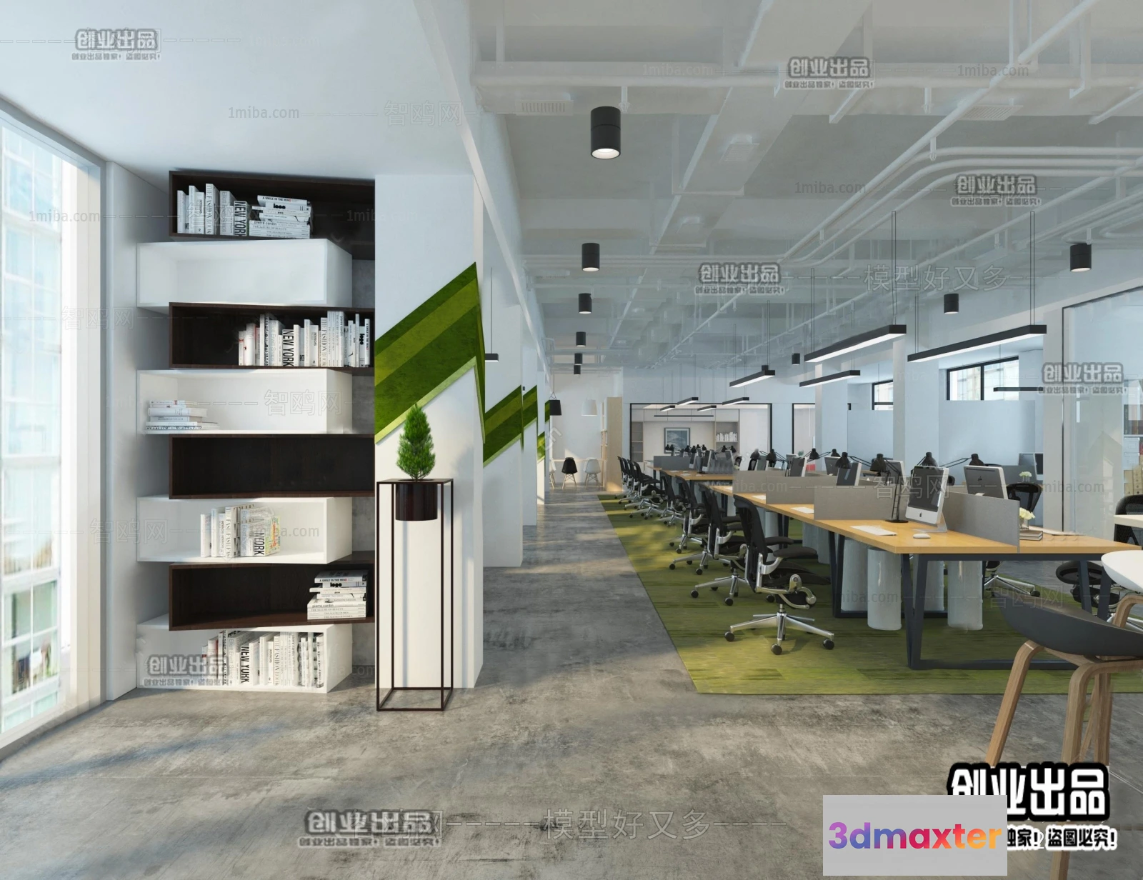 3D Models / 3D Scenes / Interior / Office Spaces / 3D OFFICE INTERIOR (VRAY) – WORKSPACE 3D SCENES – 154