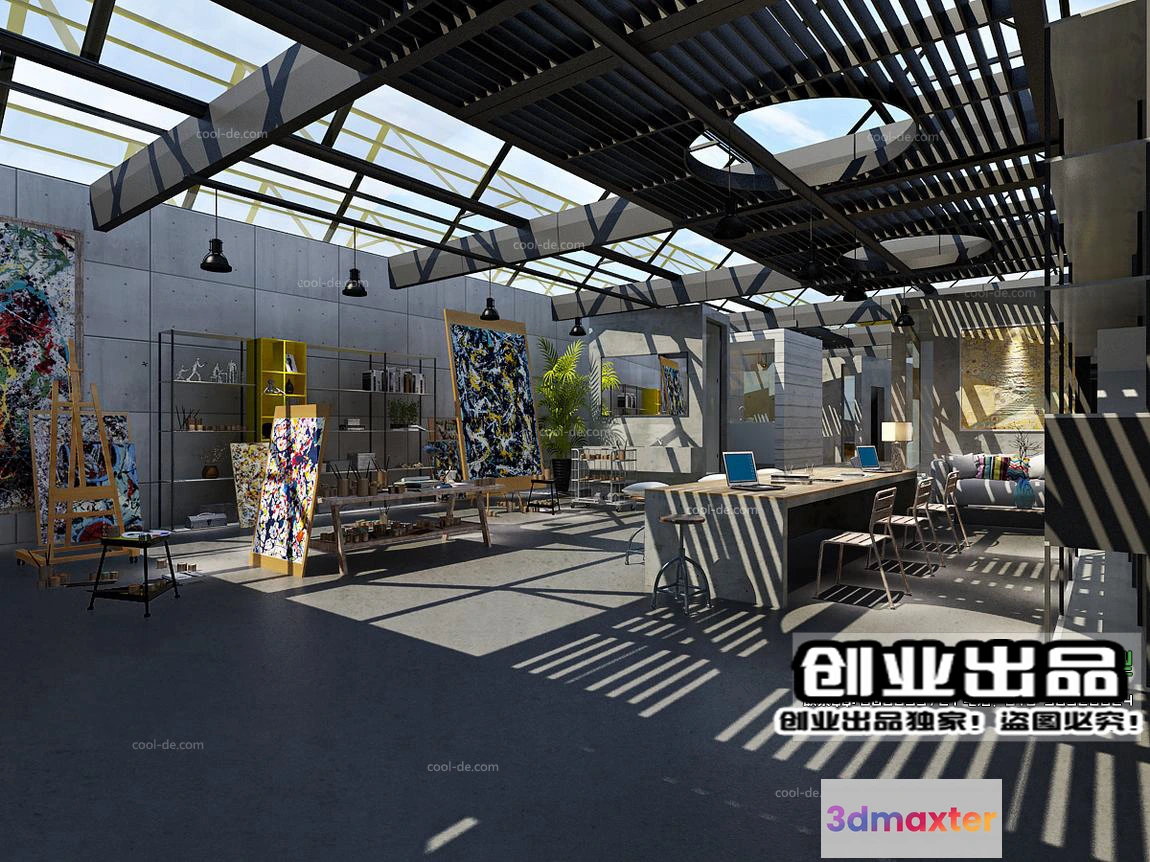 3D Models / 3D Scenes / Interior / Office Spaces / 3D OFFICE INTERIOR (VRAY) – WORKSPACE 3D SCENES – 167
