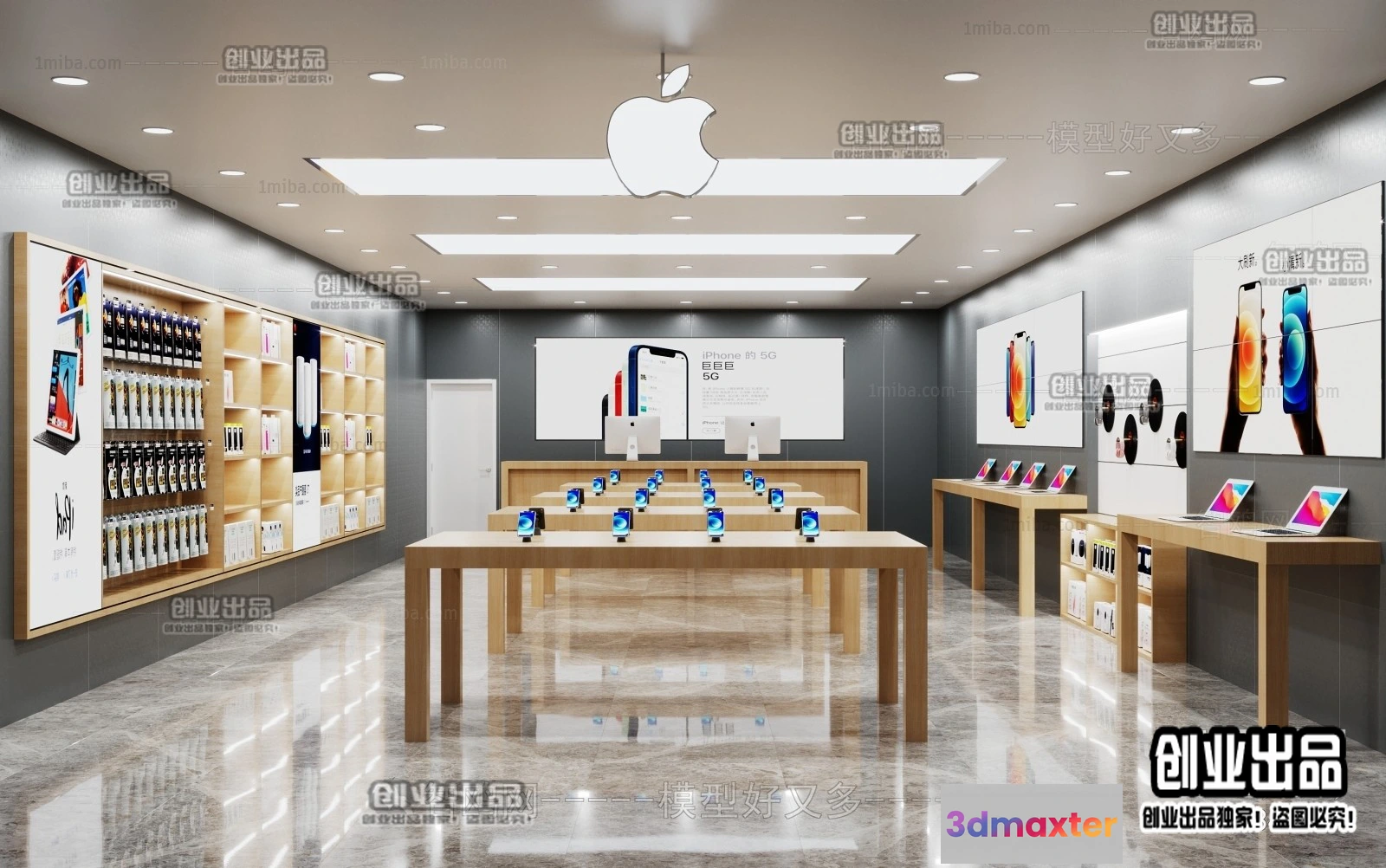 3D Models / 3D Scenes / Interior / Commercial Spaces / 3D RETAILS INTERIOR (VRAY) – MOBILE 3D SCENES – 036