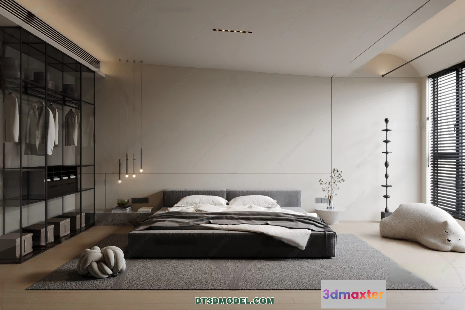 3D Models / 3D Scenes / Interior / Bedroom / 3D Scene of Gray Style Bedroom – 3D Model – 104 3D Max