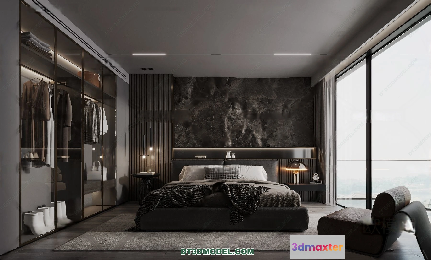 3D Models / 3D Scenes / Interior / Bedroom / 3D Scene of Gray Style Bedroom – 3D Model – 125 3D Max