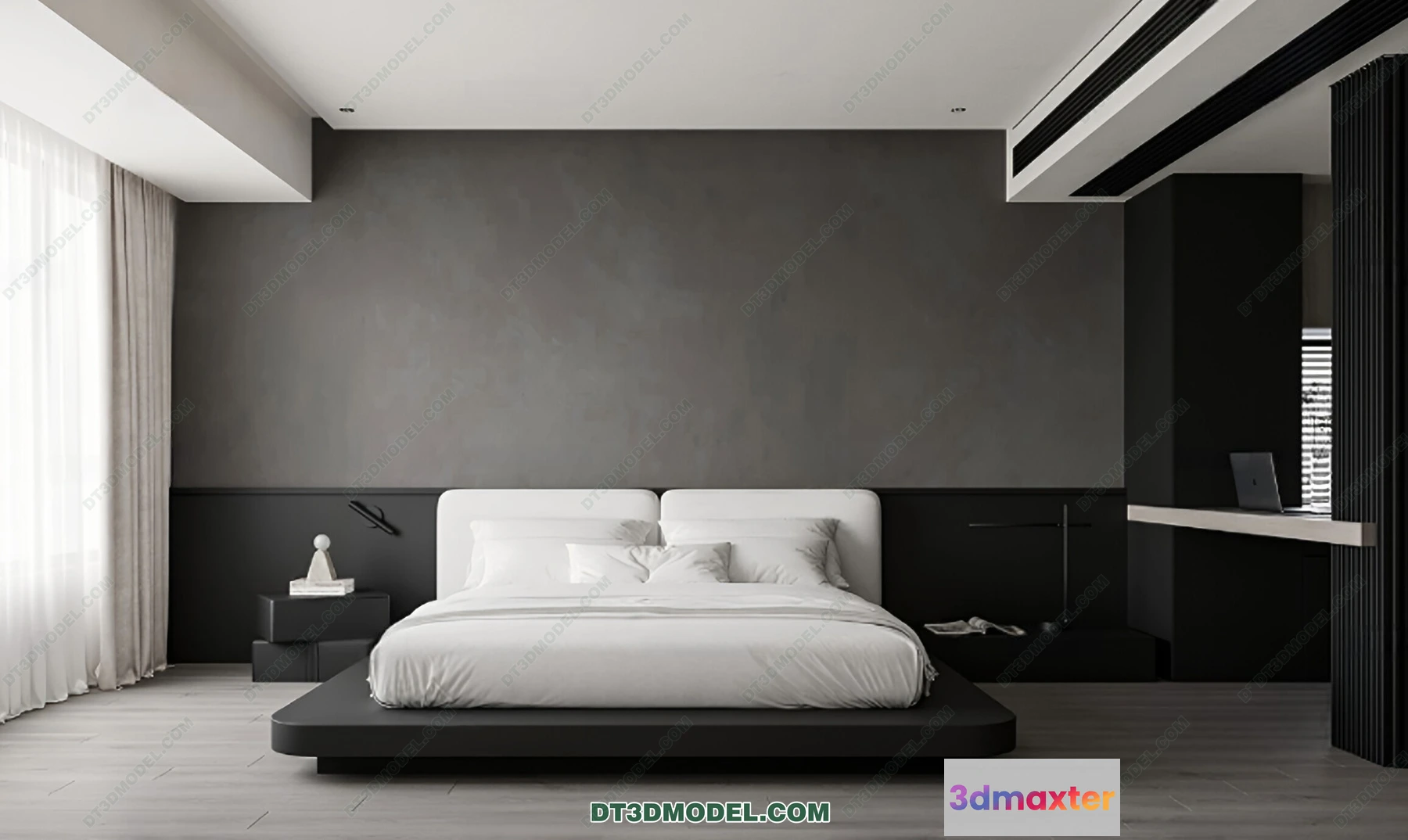 3D Models / 3D Scenes / Interior / Bedroom / 3D Scene of Gray Style Bedroom – 3D Model – 164 3D Max