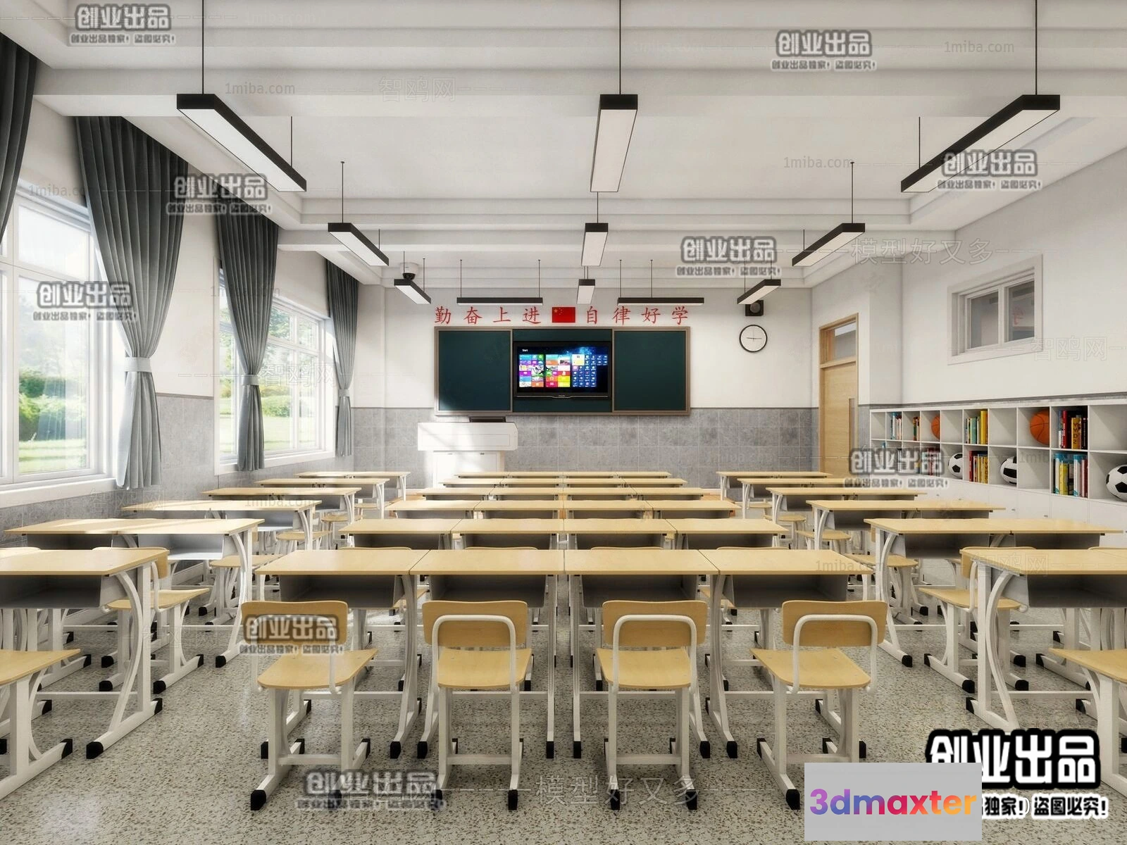 3D Models / 3D Scenes / Interior / Commercial Spaces / 3D SCHOOL INTERIOR (VRAY) – CLASSROOM 3D SCENES – 003