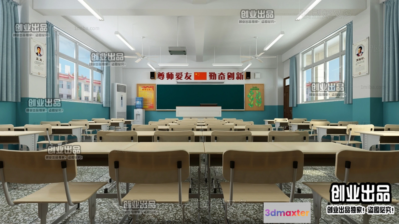 3D Models / 3D Scenes / Interior / Commercial Spaces / 3D SCHOOL INTERIOR (VRAY) – CLASSROOM 3D SCENES – 018